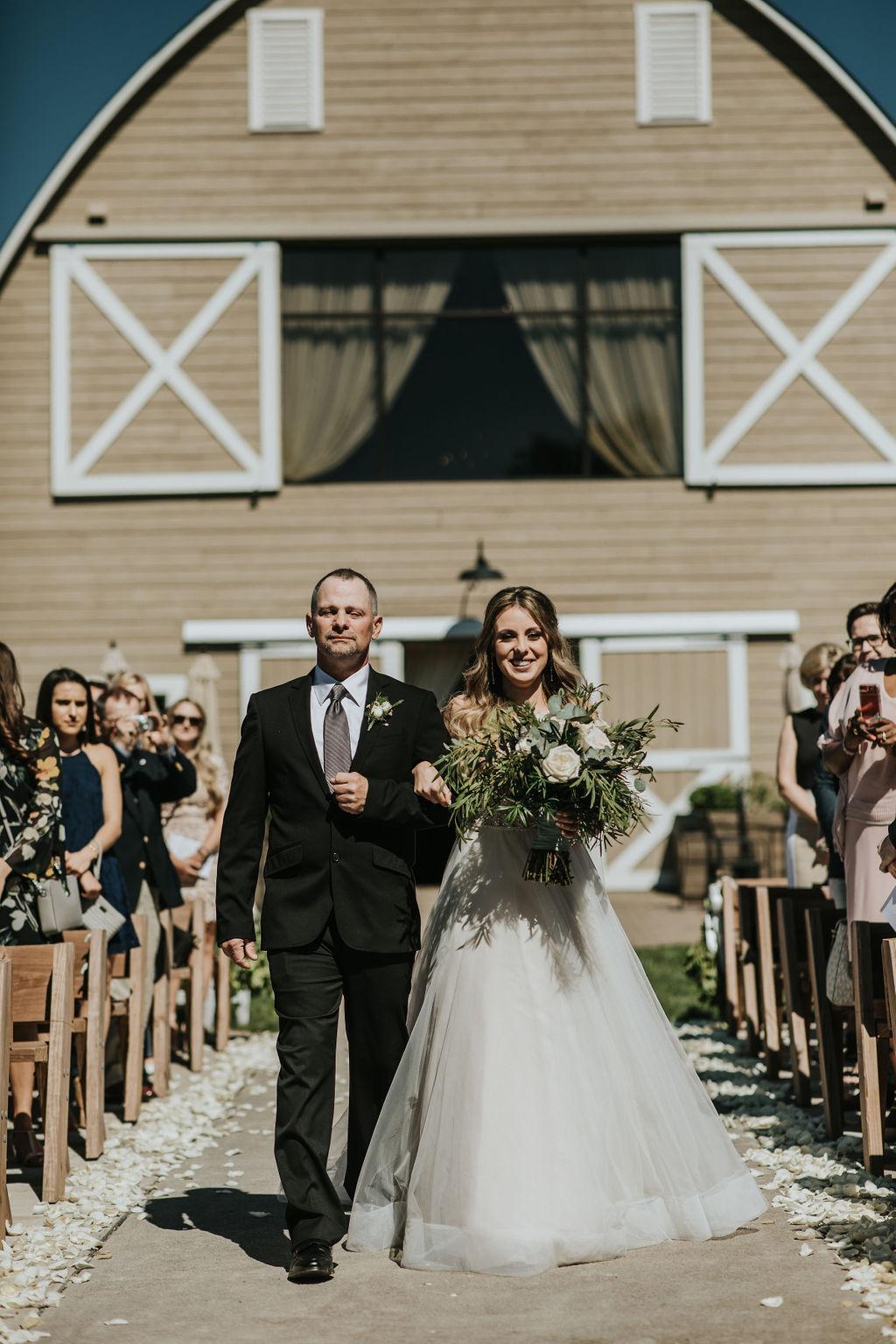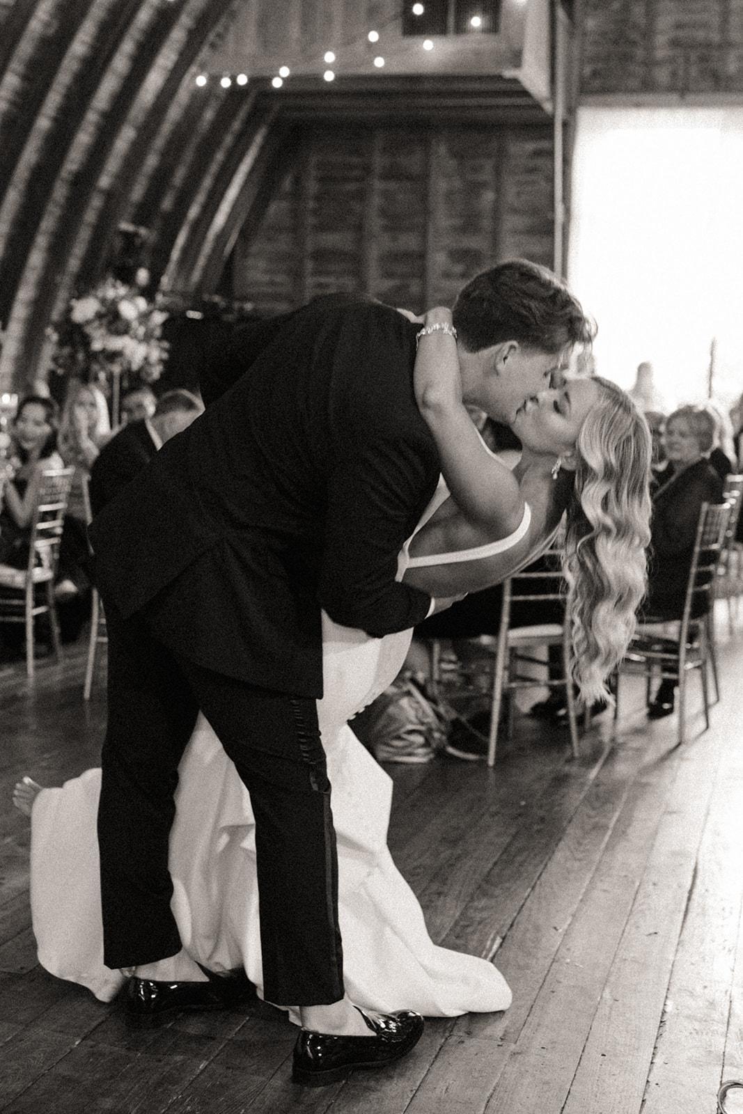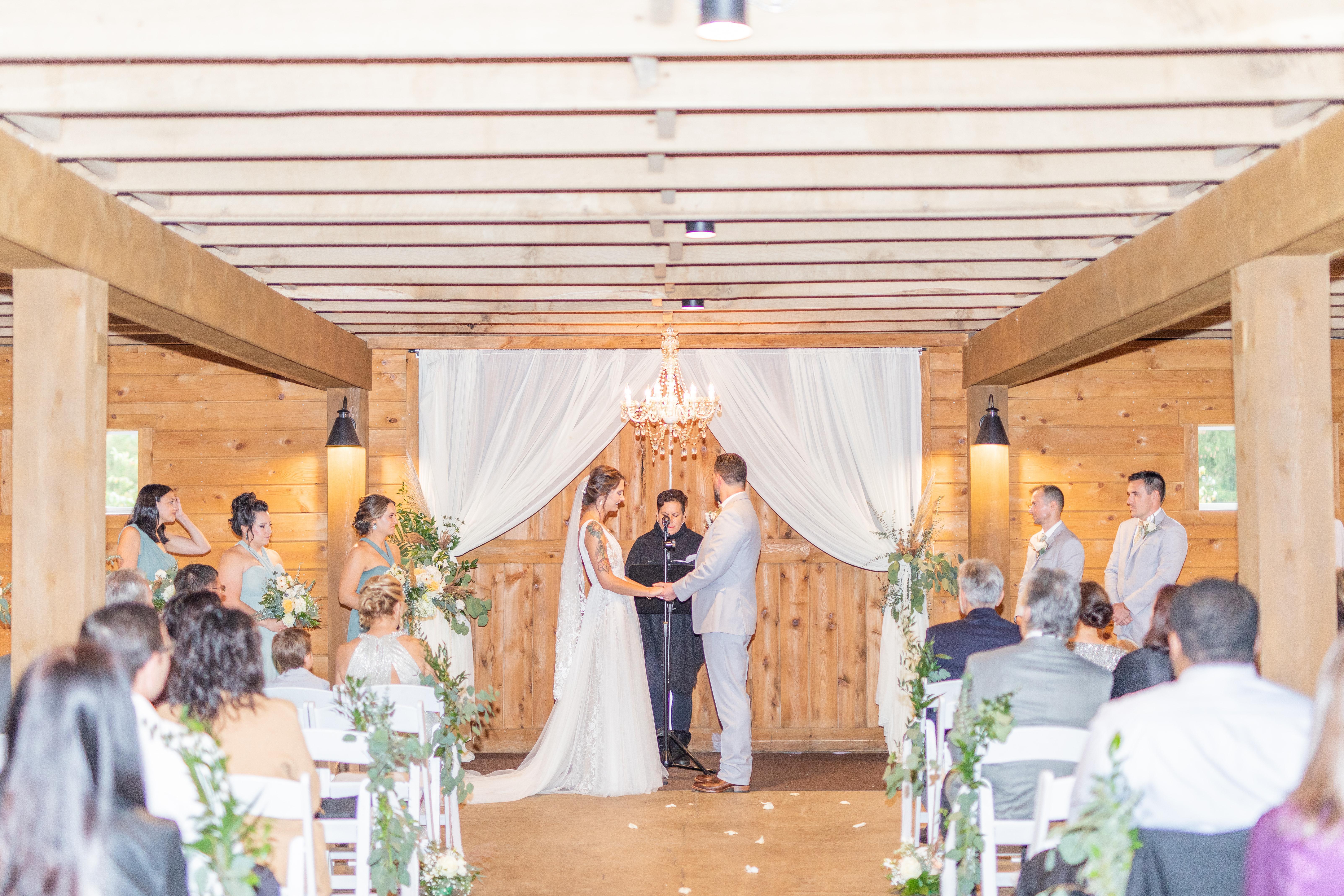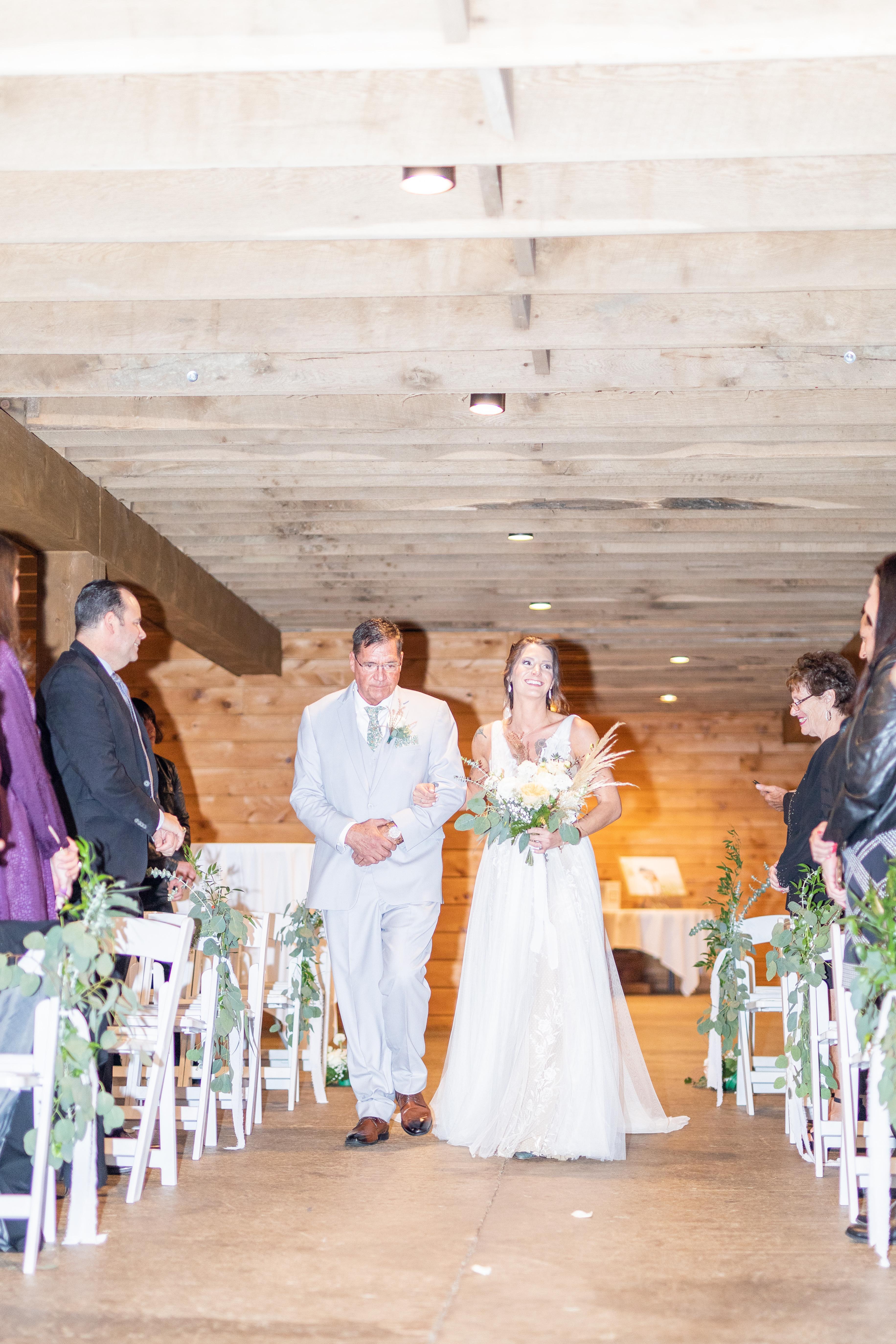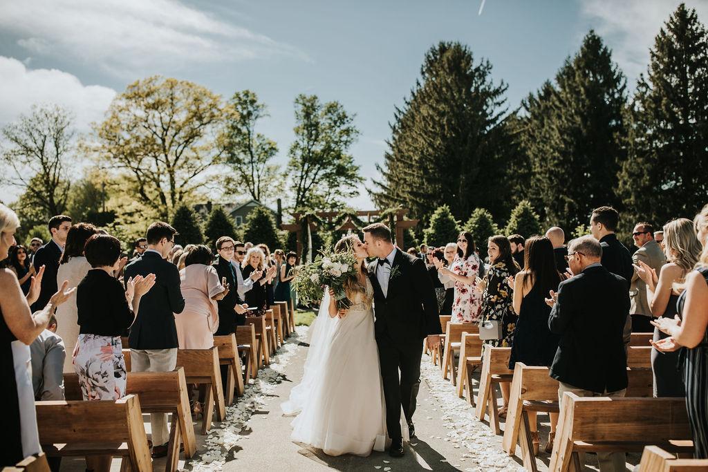 Irons Mill Farmstead is a beautiful barn and farm venue located in New Wilmington, PA. This family-owned property provides a truly romantic setting for celebrations. Couples and guests are sure to be delighted by Irons Mill Farmstead from the moment they pull into the private drive. Lush green fields are spread in every direction, and the ceremony gardens with an elegant wooden pergola provides an idyllic backdrop for saying "I do". The two-story barn dates back to the 1940s and has been renovated to provide modern amenities such as climate-controlled air conditioning and heating while retaining its authentic rustic charm. The top story boasts a spectacular vaulted ceiling, set off with magnificent chandeliers that sparkle over the polished wooden dance floor. The experienced team at Irons Mill understands how much goes into planning a wedding and includes day of coordination to execute your wedding plan! Tables and gold chiavari chairs are included with the cost of the rental.