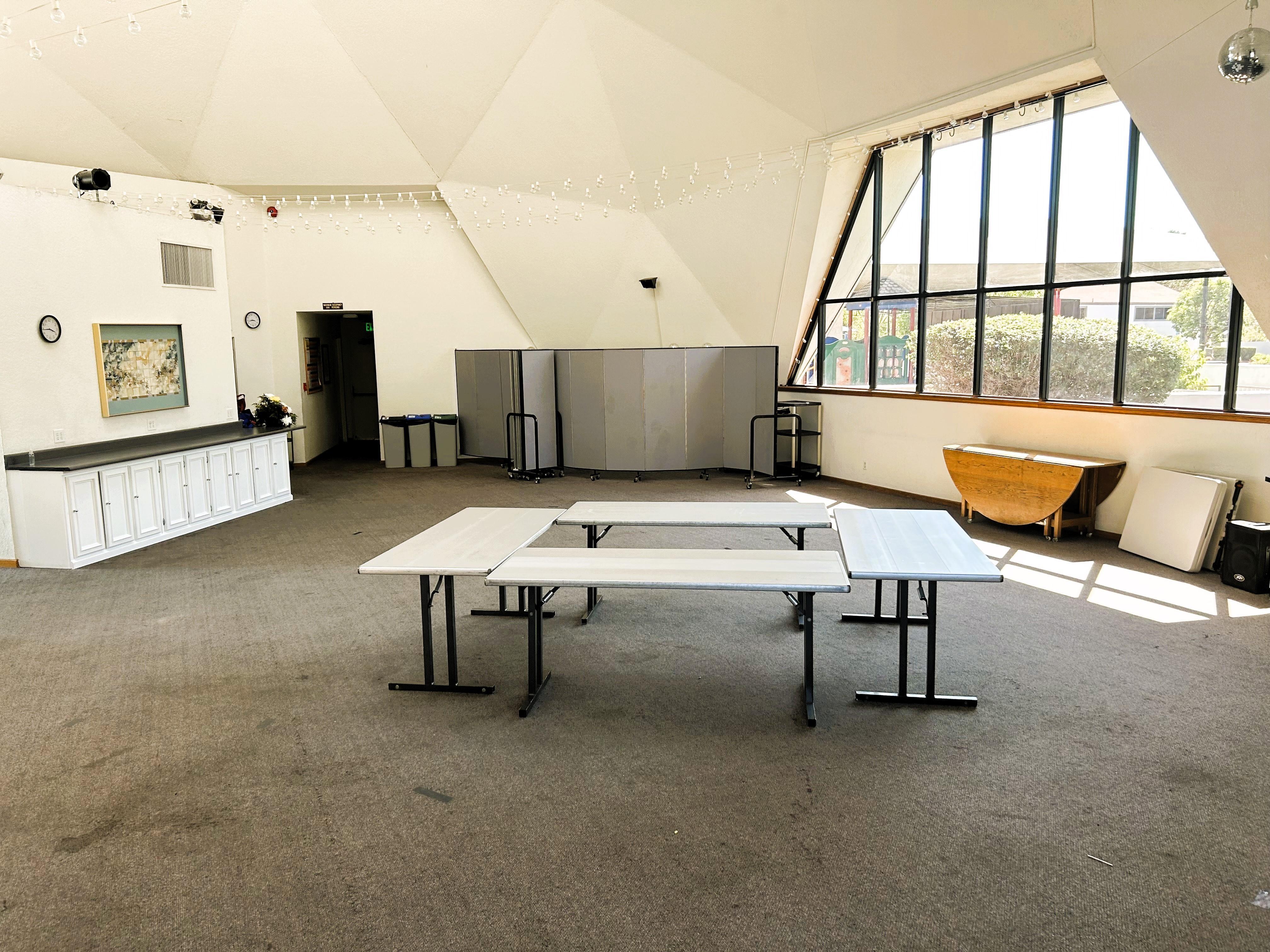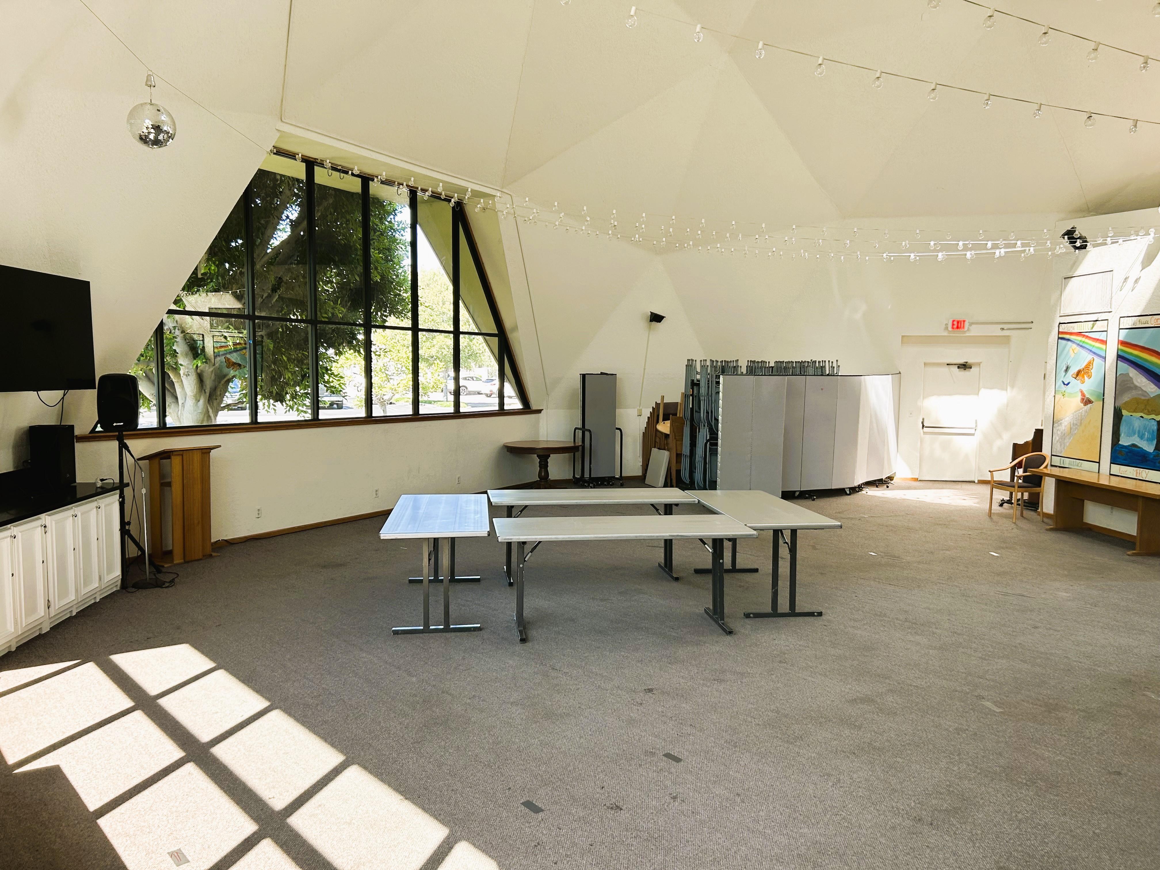 Keep the party going in the Peace, Justice, and Wisdom rooms attached to the Sanctuary. $1,000 (Reception Only) Includes: 4 hour room rental (including set up & clean up time), as well as access to the enclosed Pastor's Patio with fountain. Optional additions: +$100 each additional hour.