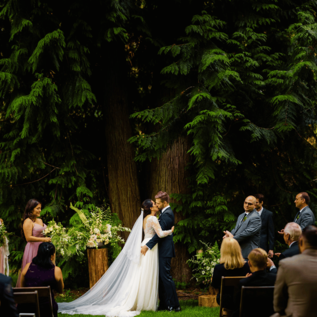 IslandWood, a forested 250-acre island oasis just 35 minutes from Seattle, offers the perfect Pacific Northwest setting for your destination wedding. Exchange vows surrounded by lush forests, serene ponds, and enchanting gardens. Celebrate with loved ones in rustic elegance, enjoying delicious, sustainable cuisine and exploring nature trails, treehouses, and a canopy tower. Your special day at IslandWood also supports environmental education, making your celebration even more meaningful.