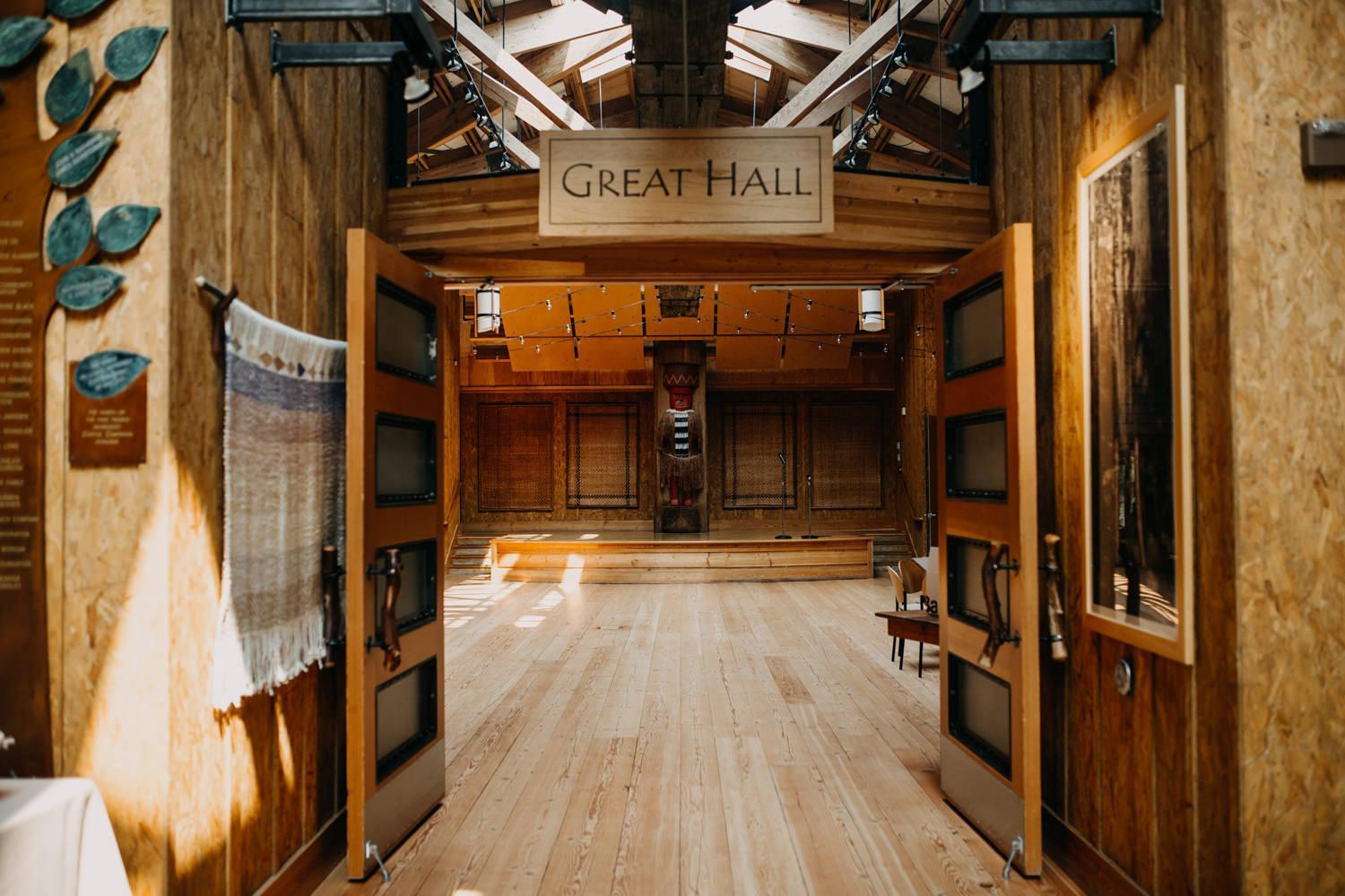 This room is meant to evoke a Coast Salish long house and to honor the region’s native cultures.