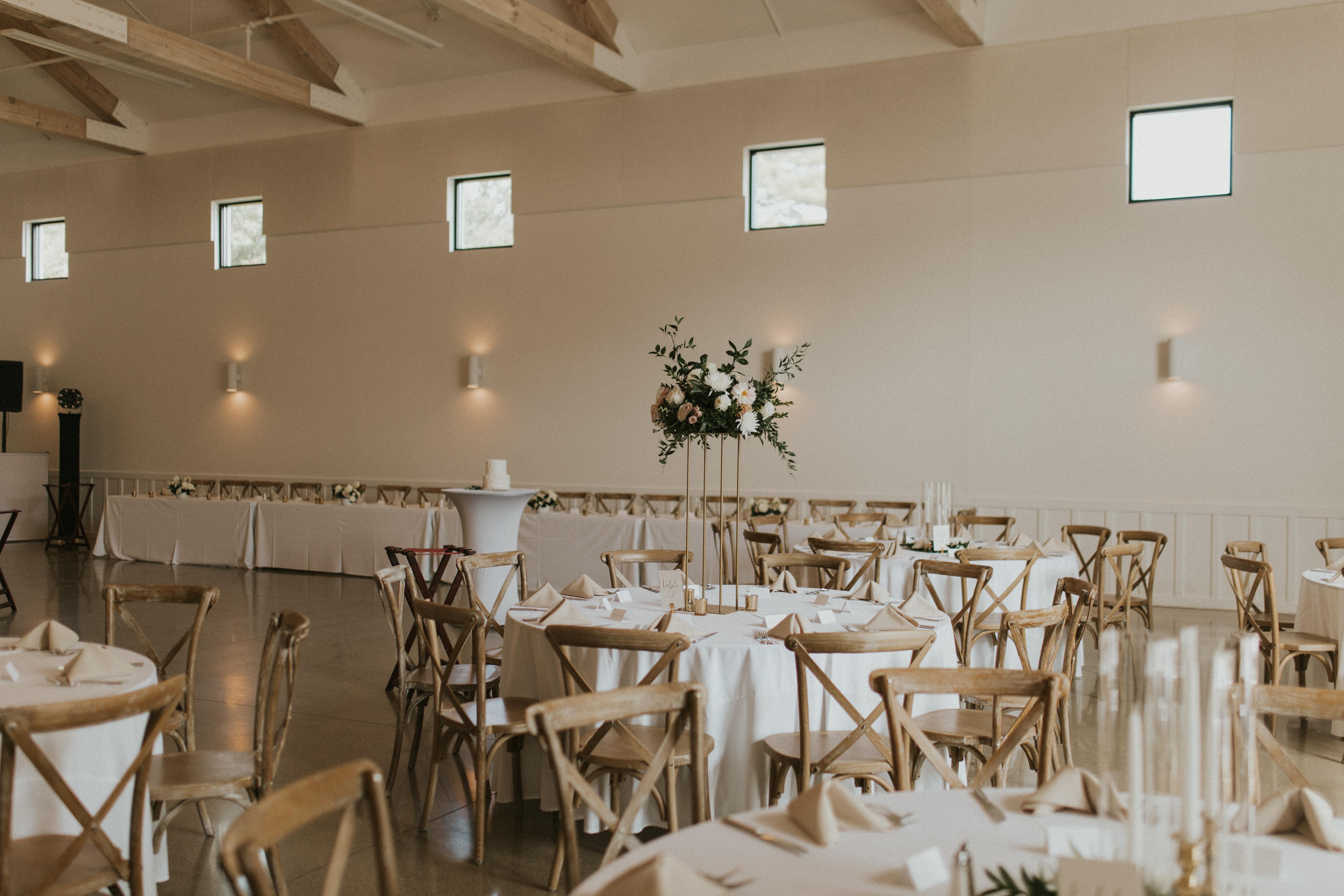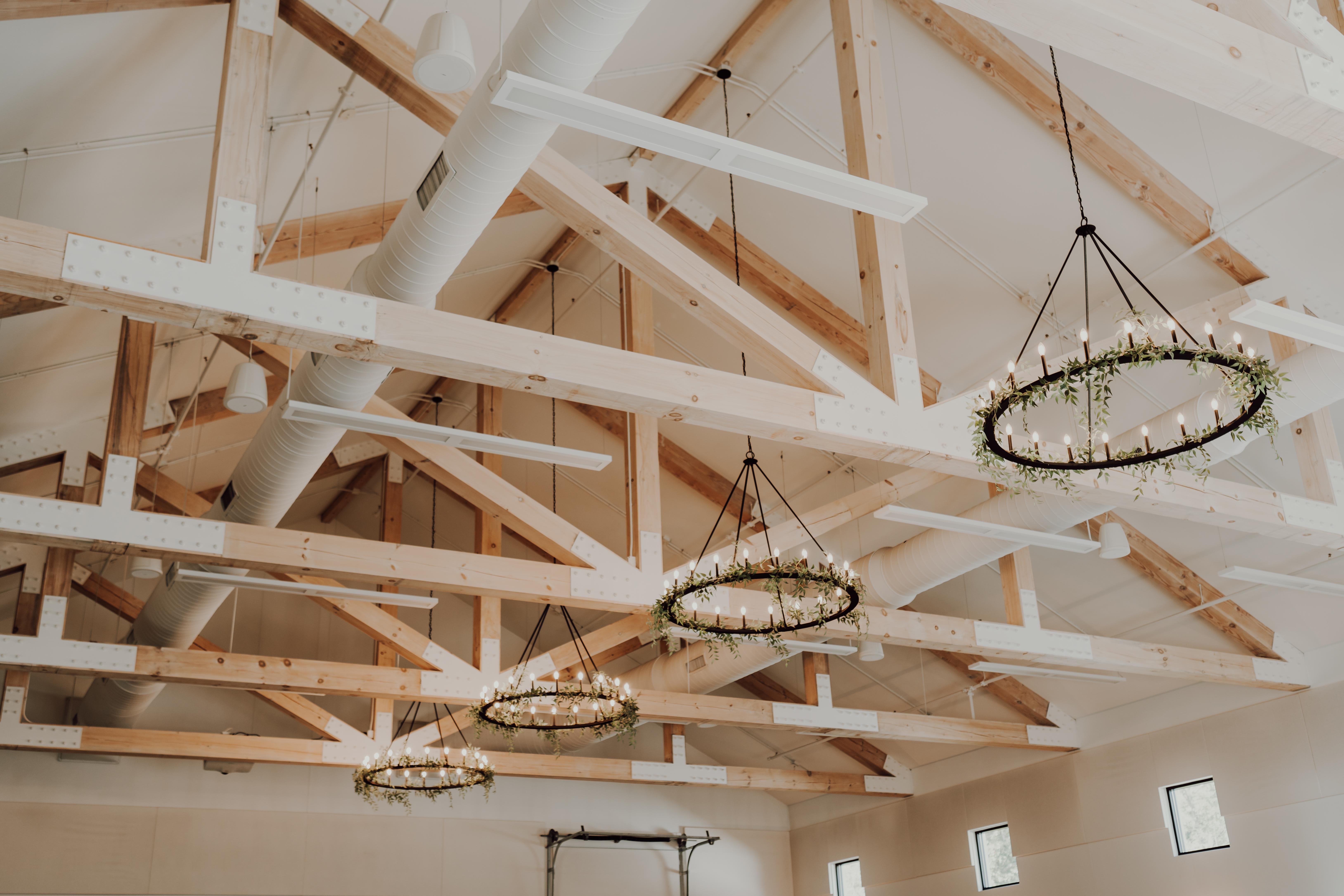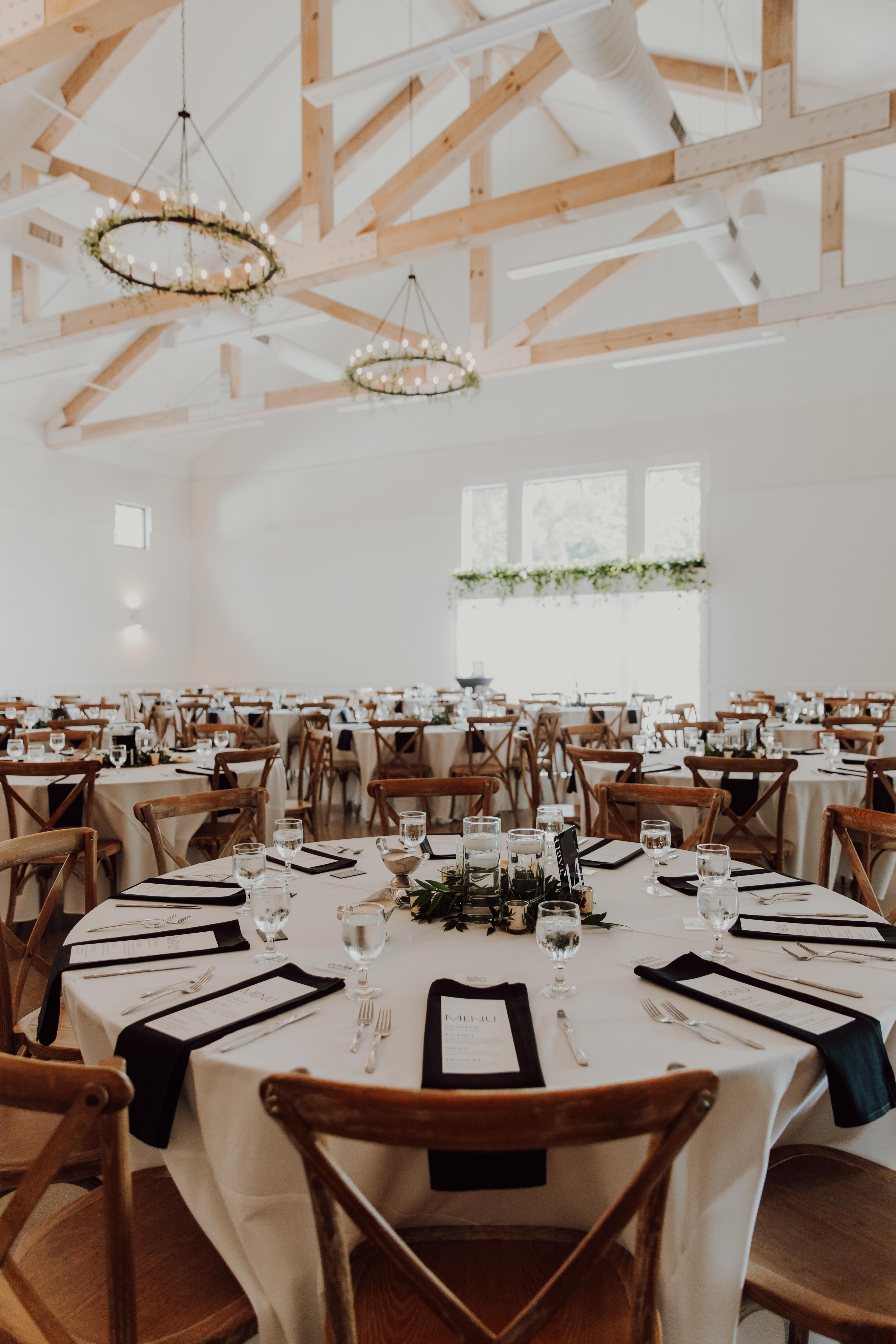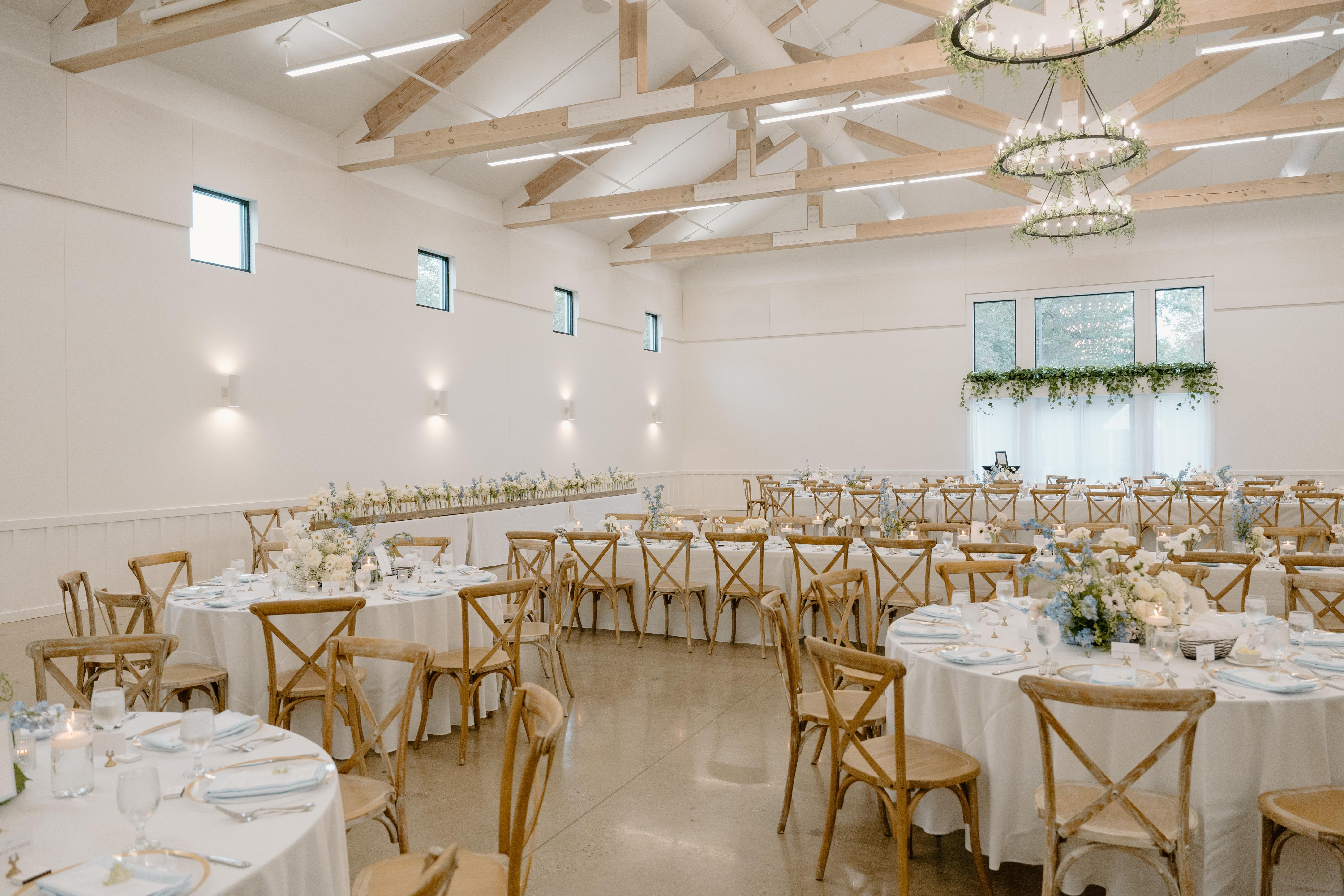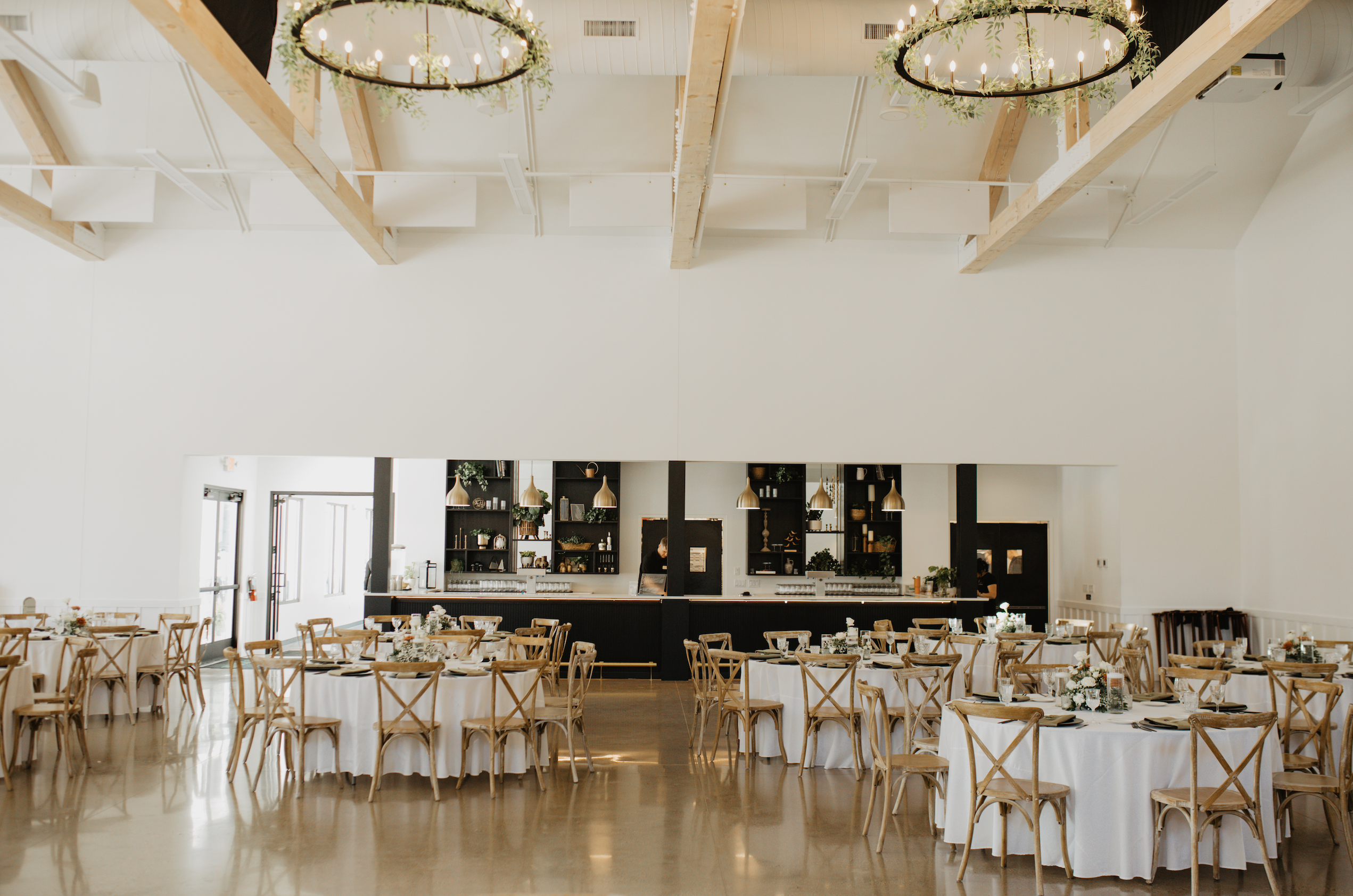 The Ivy House Reception Space: - Full Service Bar (Bar has custom black built ins, quartz counters, and room for 4 bartenders) - 3 Greenery Chandeliers & Scones (All lights in the space are dimmable) - Space comes with rounds and wooden cross back chairs (The best part is our team will set up these items for you!)