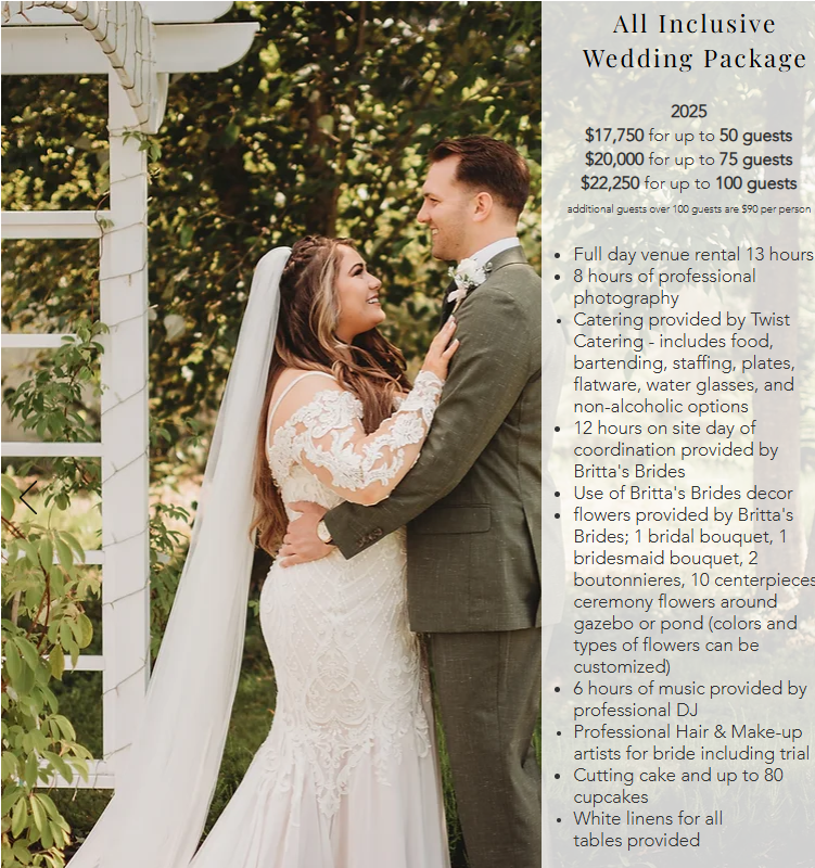My husband and I got married at this dreamy venue in August 2025, and it was everything we hoped for and more. This was actually our second wedding celebration (the first was in India), so having the venue’s all-inclusive package was a true lifesaver. Planning two weddings while working full-time felt overwhelming at times, but the support we received here made it so much easier. Britta, our venue coordinator, was incredible from start to finish. She connected us with some of the best vendors we’ve worked with and always had such a positive, can-do attitude when it came to bringing our ideas to life. Joel, our caterer, went above and beyond by adding Indian dishes to the menu for our vegetarian guests, even though it was outside of his usual offerings which meant so much to us and to our families. Both Britta and Joel were not only essential in making the day itself run smoothly but also guided us through so many of the little details leading up to it that we never would have thought of on our own. Honestly, we can’t imagine pulling off two weddings without their support, professionalism, and warmth. And of course, the venue itself is absolutely stunning. The owners have clearly poured so much effort into the landscaping. We loved having our ceremony in front of the fountain and pond, and our reception by the cypress trees on a warm summer evening felt like something out of a dream. It truly was the best summer wedding setting I could have imagined. I would highly recommend this venue and their all-inclusive package to anyone looking for a beautiful, care-free outdoor wedding experience.