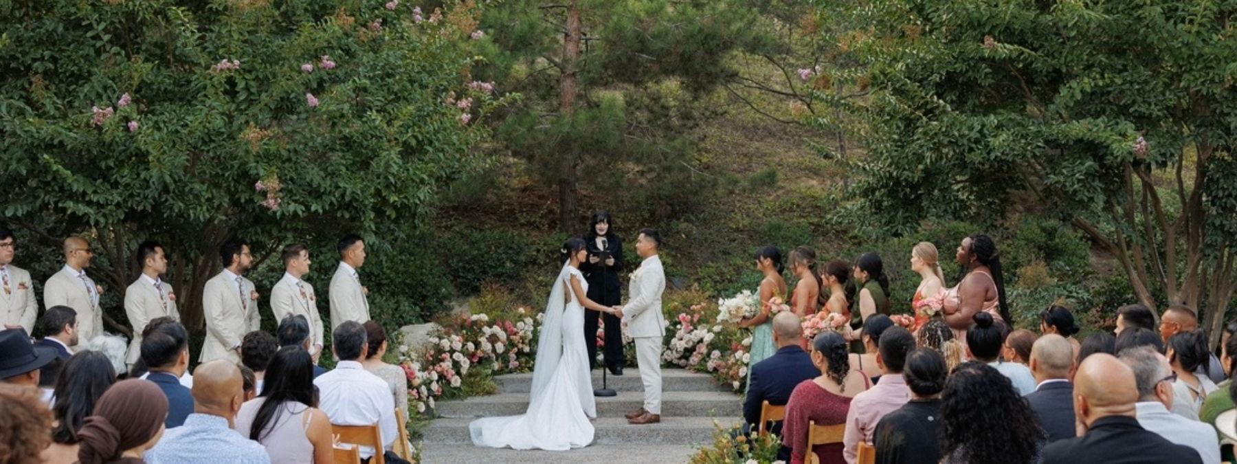 My husband and I just got married last week at the Japanese Friendship Garden (JFG) in Balboa Park, and we are so happy we chose this venue! The garden is absolutely stunning, especially in June. We visited so many venues and the JFG just kept calling to us. We really wanted our wedding to be an experience for our guests. With its natural beauty, there was really no need for much in terms of decorations. Marina, the venue coordinator, was a joy to work with--always prompt in answering my many questions and very upfront from the beginning about the venue's requirements, since it is first and foremost a museum and garden. The JFG can be a bit tricky in terms of its strict timelines, so using their recommended vendors who truly understand the layout and setup logistics is absolutely critical. For example, setup can only begin at 3 PM, and the earliest guests can arrive is 5 PM. You're also required to purchase a one-year membership as part of the venue rental, which we used as an excuse to keep visiting. We found a lot of inspiration from the NIWA Wedding Expo in November--it was incredibly helpful to meet so many of their recommended vendors. We also attended the Cherry Blossom Festival in March, which was so beautiful, and even got the idea for my signature drink, the Naguri Sake, from their beer and sake garden! The month leading up to the wedding wasn't without challenges. We ran into some issues with our original event rental company and ended up having to switch vendors just five days before the wedding. Marina was incredibly quick to act and helped us adjust our rental timing at the last minute, which made all the difference. We ended up getting to enjoy the venue space an extra hour! A few things I learned from planning our wedding that might help other couples: I highly recommend getting quotes from all the vendors on the venue's preferred list. It's a great way to help you have a budget baseline and understand your options--it's definitely worth shopping around. Consider having your wedding coordinator work directly with the event rental company instead of going through the caterer. I'd highly recommend Platinum Even Rentals. Overall, their pricing was significantly lower than all the other event rental companies I got quotes from. They did an excellent job -- everything was on time, there were absolutely no issues, and their setup was so smooth that none of our guests even noticed the transitions. In our case, the caterer was going to charge an additional 22% operational fee and 7.75% sales tax, which we avoided by having our coordinator work directly with the rental company. Thank you so much to Marina for helping make our day absolutely perfect. We were truly able to relax, enjoy the moment, and take it all in.