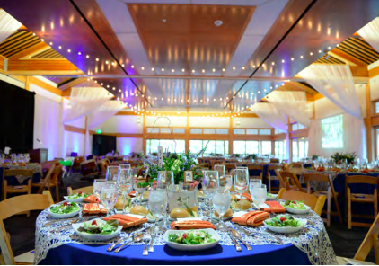 The Inamori Pavilion is an indoor space with an outdoor feel, perfect for receptions. The location could also work great for a ceremony as well. Area includes a deck for guests to walk around, enjoying the gorgeous scenery and waterfall. Seated Reception: 200 (+30 if no dance floor) (+50 if Ceremony off-site) Cocktail Reception: 300 Ceremony: 250 (Room can be divided in half for small events)