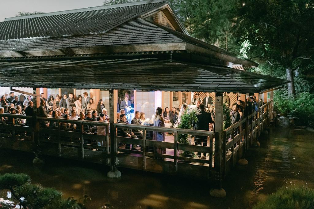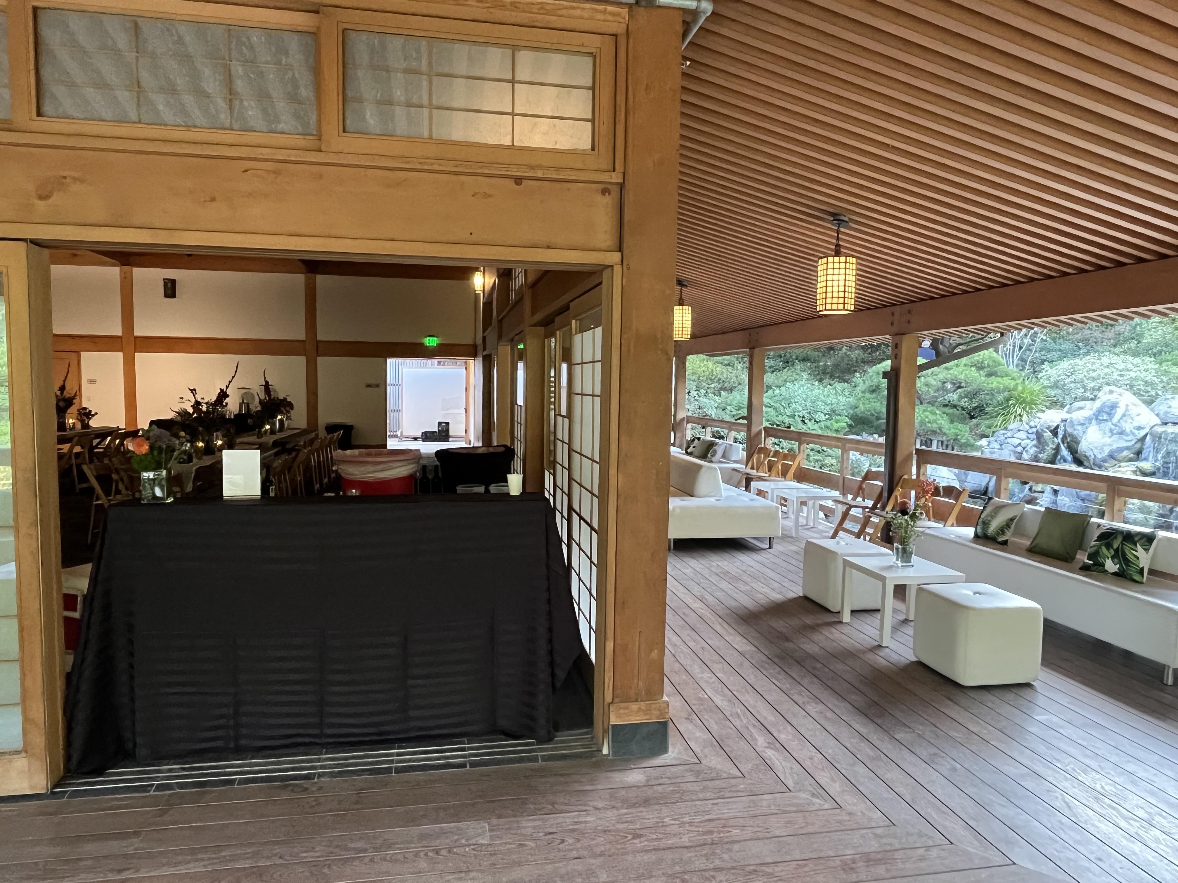 Beautiful authentic Japanese architecture; the room is open-air and has a flow with the Lower Garden Courtyard. Perfect for larger receptions, with half inside/half outside dining and dancing