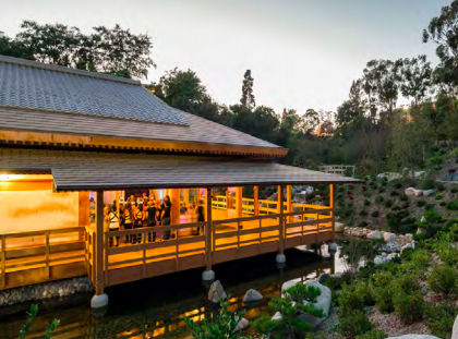 From outdoor ceremonies surrounded my manicured, lush trees and florals, to elegant evening receptions, the Japanese Friendship Garden & Museum is an unforgettable venue. A hidden gem in the heart of San Diego's historic Balboa Park, the garden is a truly unique and ethereal venue. The garden features authentic Japanese architecture, multiple koi ponds and waterfalls, bonsai, cherry blossom trees and wisteria arbors. For full-scale weddings, 'mix and match' your ceremony, cocktail hour and reception locations; every wedding is unique. The Lower Garden provides both indoor or outdoor spaces for dancing and dining. Our daytime Minimony package is perfect for couples looking to hold a small ceremony at the garden and have the benefit of all the garden's photo op spots, with a reception elsewhere.