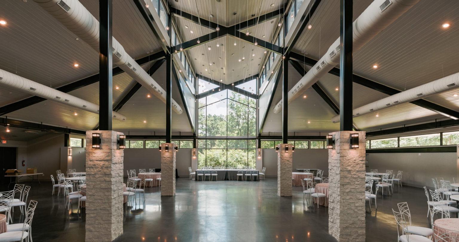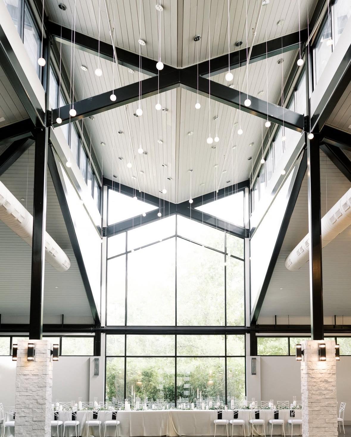 Our Moon Vine Pavilion is the perfect space for your wedding reception. Inside, stunning skylight and floor-to-ceiling windows amplify views of the area’s natural splendor. Clean lines, pendant chandeliers, and steel beams make for a sleek, modern aesthetic- while putting complete creativity and control in your hands. This timeless architectural gem will serve as a focal point to your once-in-a-lifetime celebration- and a perfect place to toast, laugh, and dance the night away.
