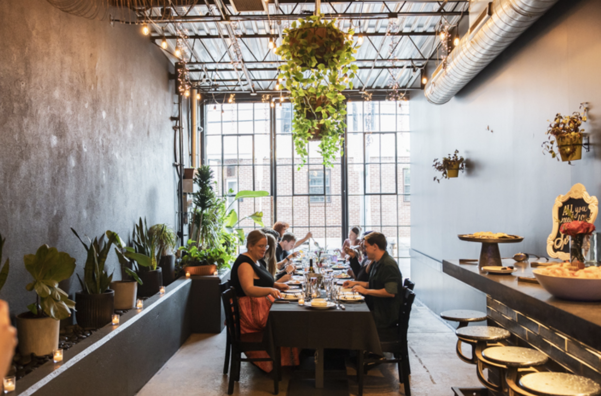 -Speakers for guests to play their own playlists -Multiple Televisions -Exposed Brick - Lots of plants - Dimmable and romantic lighting - Vintage and restored materials from the city, including the Divine Lorraine - Large Marble Top Bar downstairs - More intimate wooden balcony bar upstairs