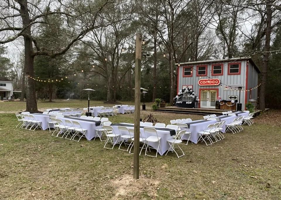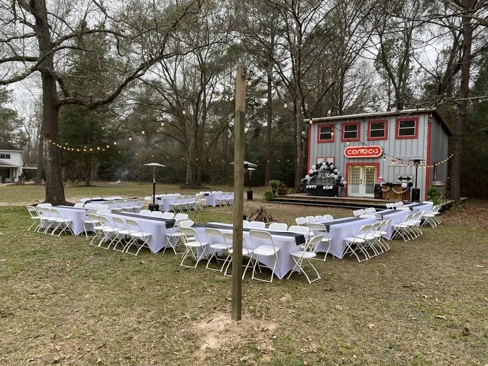 We are a family-owned business nestled in the woods in New Caney Texas. My husband and I have put a lot of love in our outdoor country venue where we are able to provide a relaxing yet memorable experience on our beautiful 7 acre gated property. We offer Weddings (up to 100 guest), Birthdays, Anniversaries, Reunions, Sporting events, and a Couples Retreat Glamping Yurt.