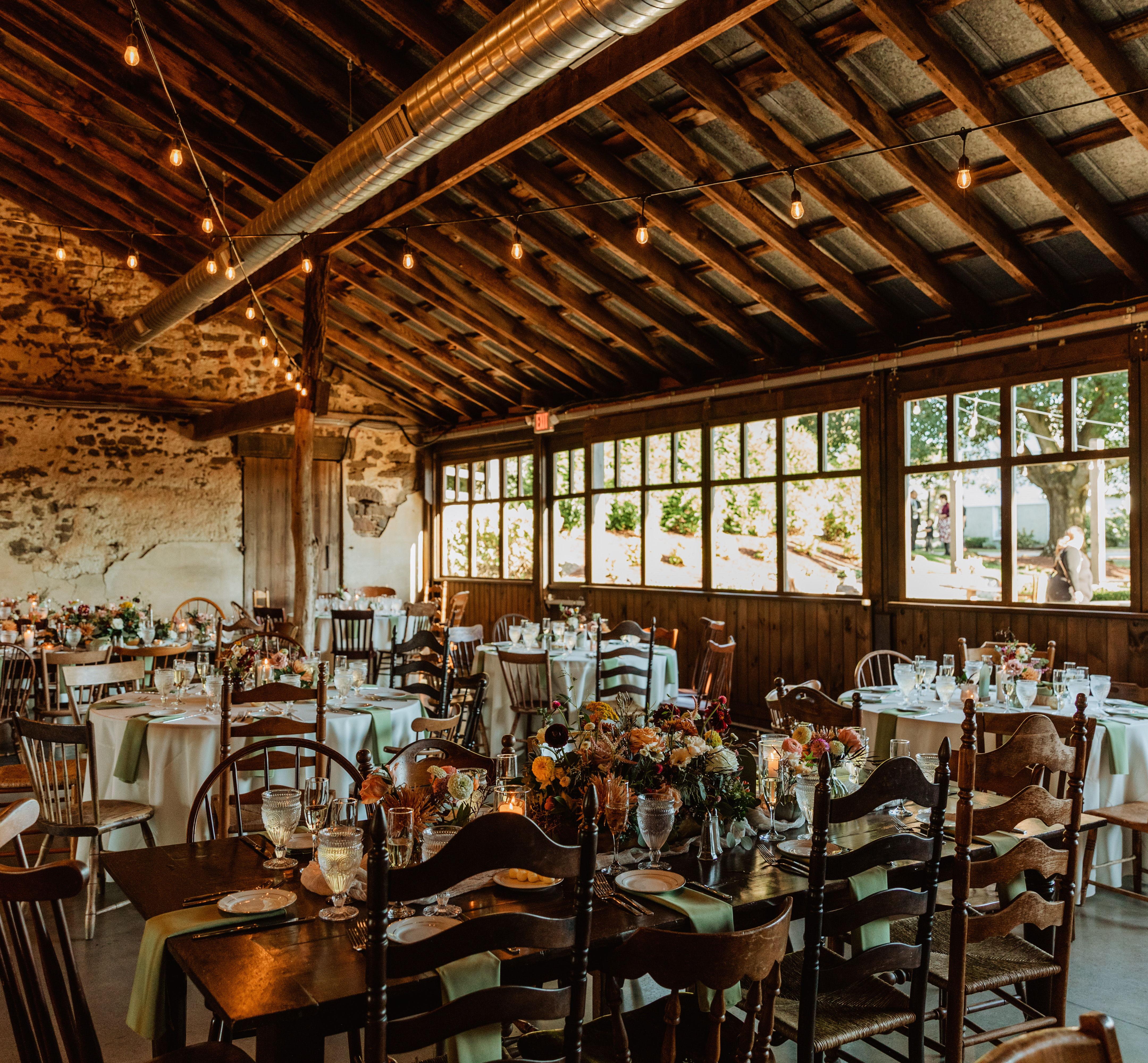 17th Century Stone Barn’s rustic beams & iron stone offers a romantic cocktail hour or intimate ceremony if the weather isn’t suitable for outdoors.
