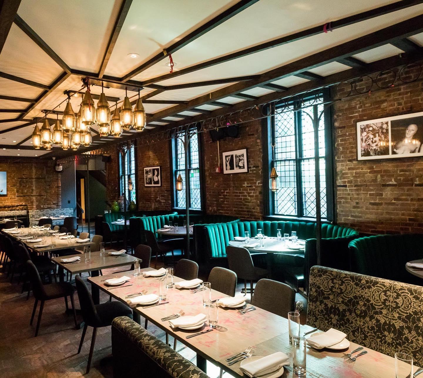 The Main Dining Room and heart of the Jue Lan Club, strikes the perfect balance between luxury and rustic appeal with plush emerald green banquettes, high ceilings and stained glass windows. It is perfect for mid to large-size gatherings of all types, with the flexibility to move the center tables to enjoy a cocktail party of an imagination. The "Shampoo Room" also is the showcase of our vast rotating art collection and it really adds to the dynamic setting of this incredible space steeped in history.