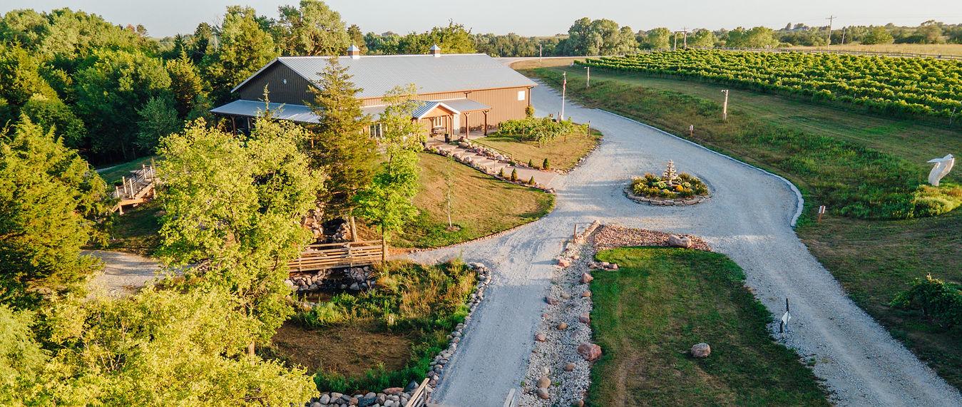 Featuring six glass garage doors that open to our patio and surrounded by a vineyard on the West and a garden on the East, this is truly one of the most unique venues in Nebraska. Junto Wine is the perfect location for your Wedding & Reception. The Event Center was constructed in 2016 and includes restrooms, heating/air, a bridal suite, full bar, and more.