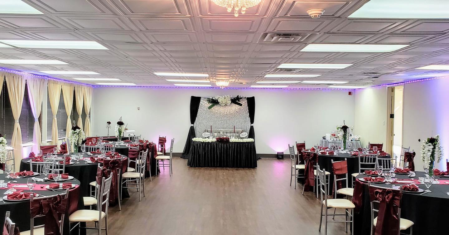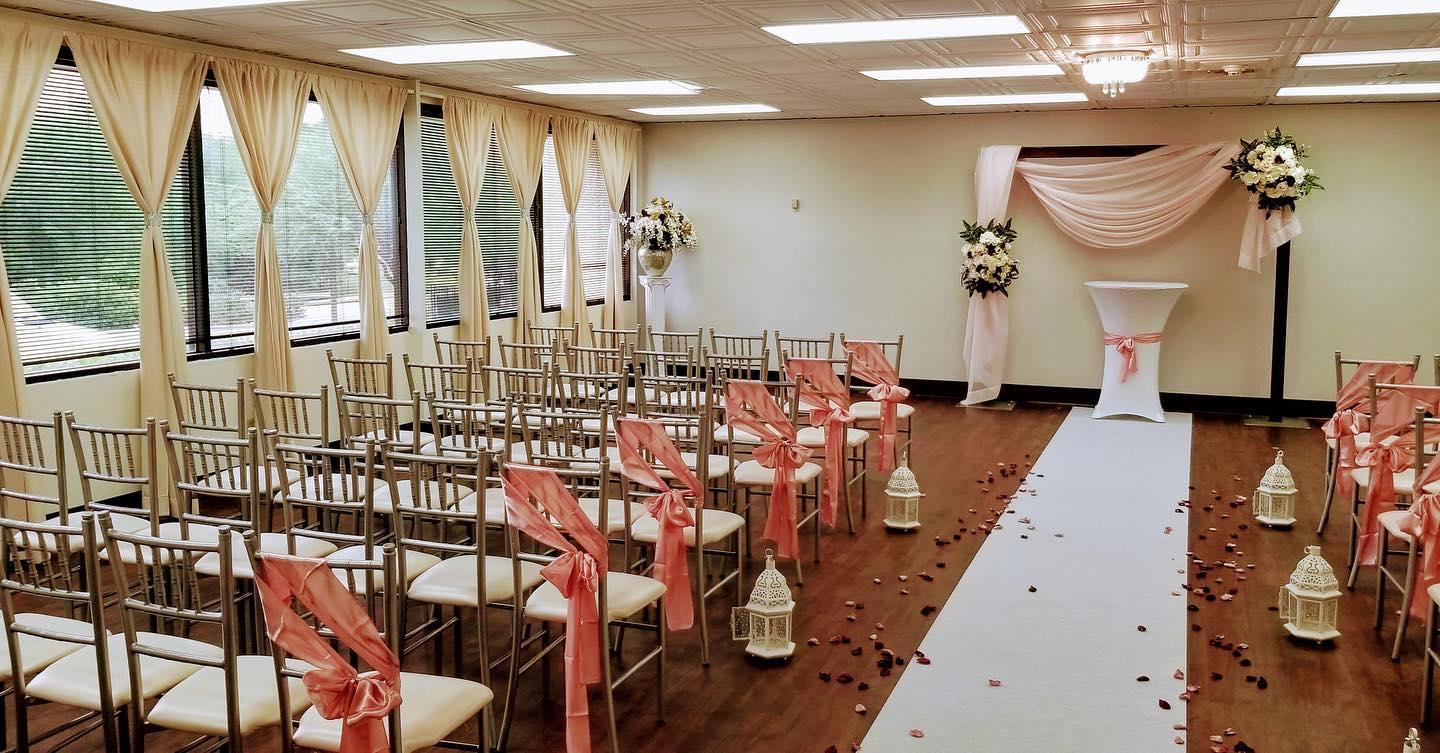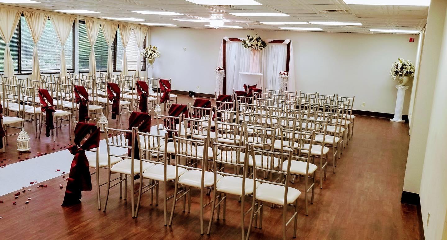 The Aphrodite room seats up to 75 persons and offers a great setting for a small wedding. The room comes with neutral decor and maple-brown wood flooring. In addition to the neutral colors, this room comes with LED lighting around the room to change the ambiance of the setting. You can add uplights for any desired effect as well. This is a great affordable option for a small wedding. You can have a ceremony in the Cupid’s Garden followed by a reception in the Aphrodite room as a one-stop option.