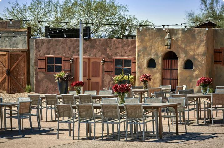 Enjoy a casual contemporary Southwestern inspired rehearsal dinner with fresh regional cooking from both sides of the border. Featuring indoor and outdoor seating with courtyard, fire pits, and views of Mummy Mountain.