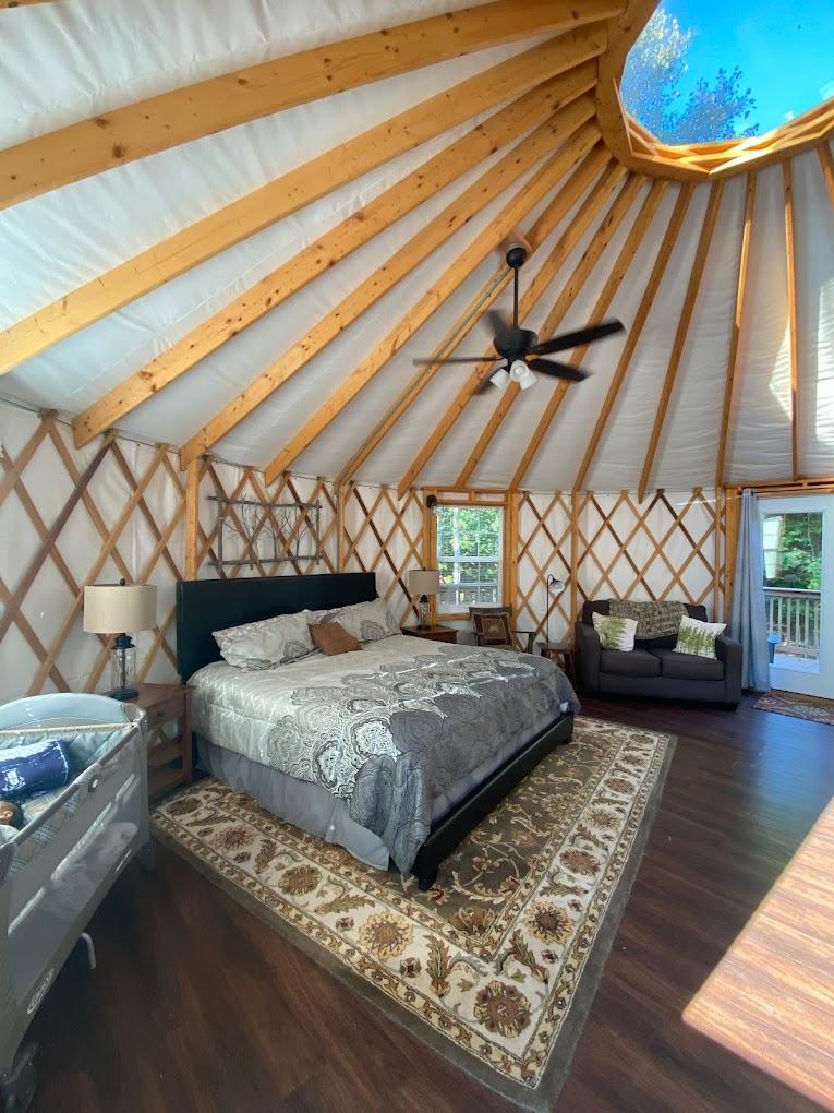 Our most lavish wedding venue is an amphitheater beautifully situated on the edge of a mountain top, overlooking a breathtaking valley, with a reception hall nearby and fully furnished yurts for you and your guests. Your perfect day can happen at any time of year. The Appalachian Mountains offer a choice of palettes – the wild bouquets of spring and summer, the deep reds and golds of fall, and the stunning whites of winter.
