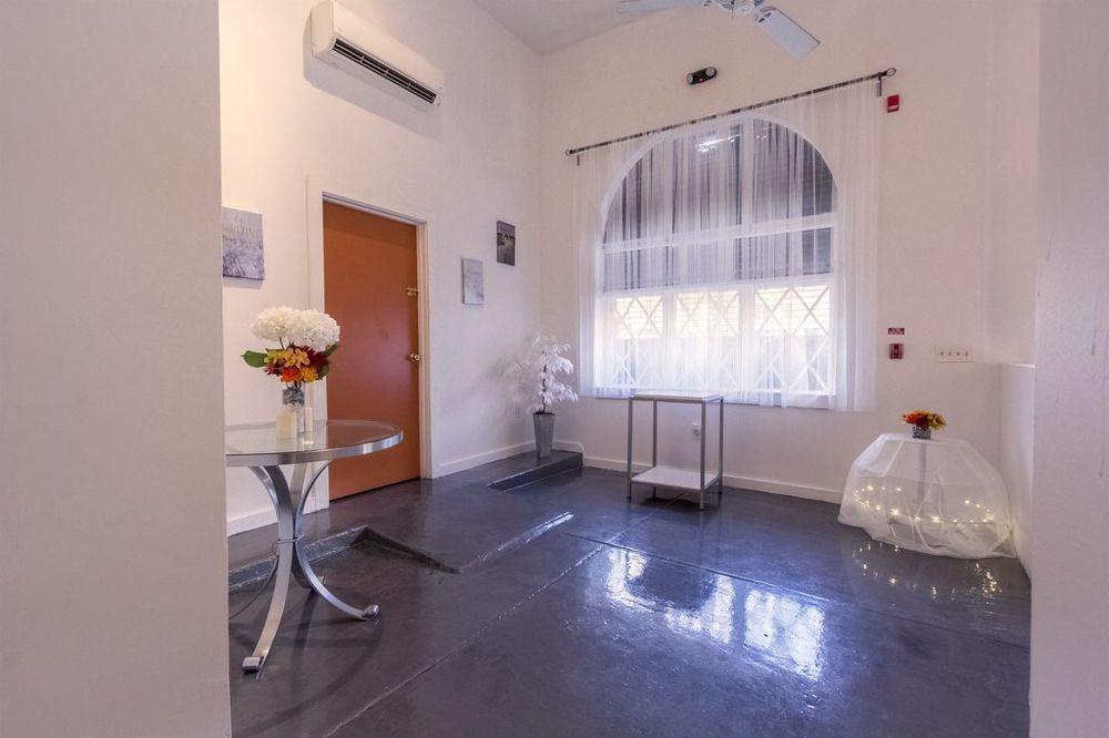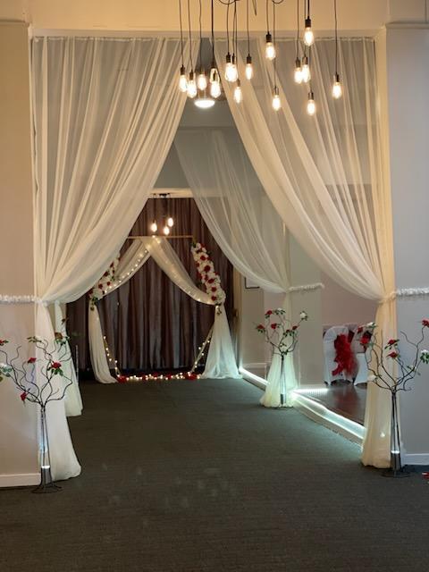 This beautifully designed 1,800 sq. ft. studio offers a dynamic space perfect for intimate events, photo shoots, and creative productions. Mozaic Studio features a sleek platform dance floor, wall-to-wall draping with customizable uplighting, and a bold greenery wall perfect for photo ops. Elegant column draping adds a touch of sophistication, making the space ideal for everything from branding shoots to private celebrations.