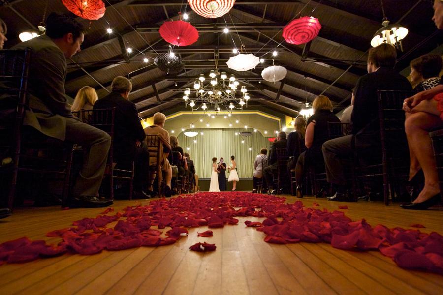 With vaulted ceilings, original hardwood floors, magnificent lotus flower stained glass windows and an impressive stage, the expansive Grand Ballroom radiates classic arts and crafts-style beauty. Featuring a comfortable event capacity of up to 200 for your ceremony and seated dinner, or 300 for a stand up cocktail-style party. The beautiful stage can showcase your bridal party or allow your band or DJ to have a prominent spot in your wedding.