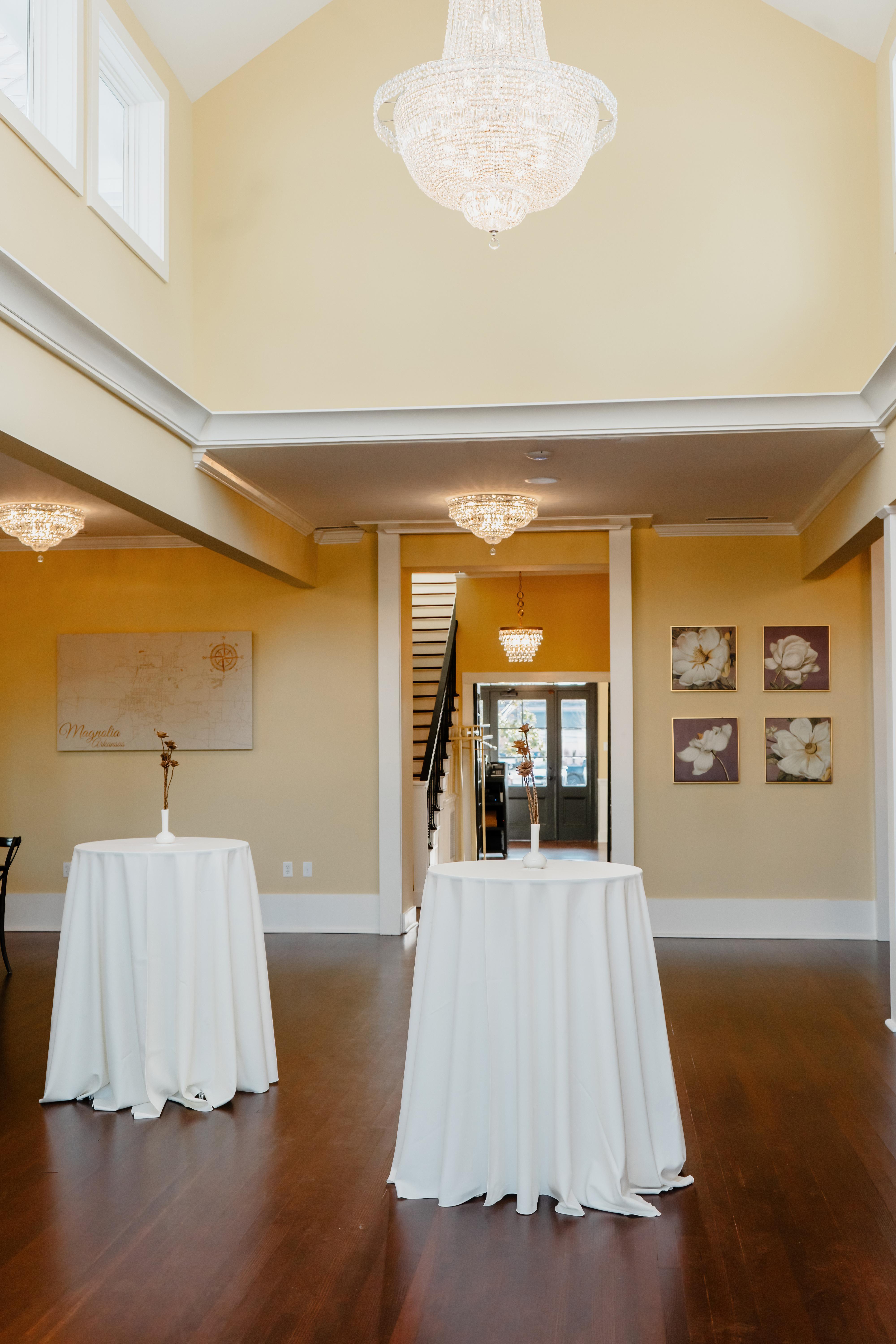 As you step into the 1,200-square-foot Magnolia Ballroom, you'll be greeted by stunning hardwood floors, a soaring cathedral ceiling, a stylish built-in bar, and access to a lovely wrap-around veranda. This elegant space is dedicated to the charming town of Magnolia, which the Kersey family calls home.