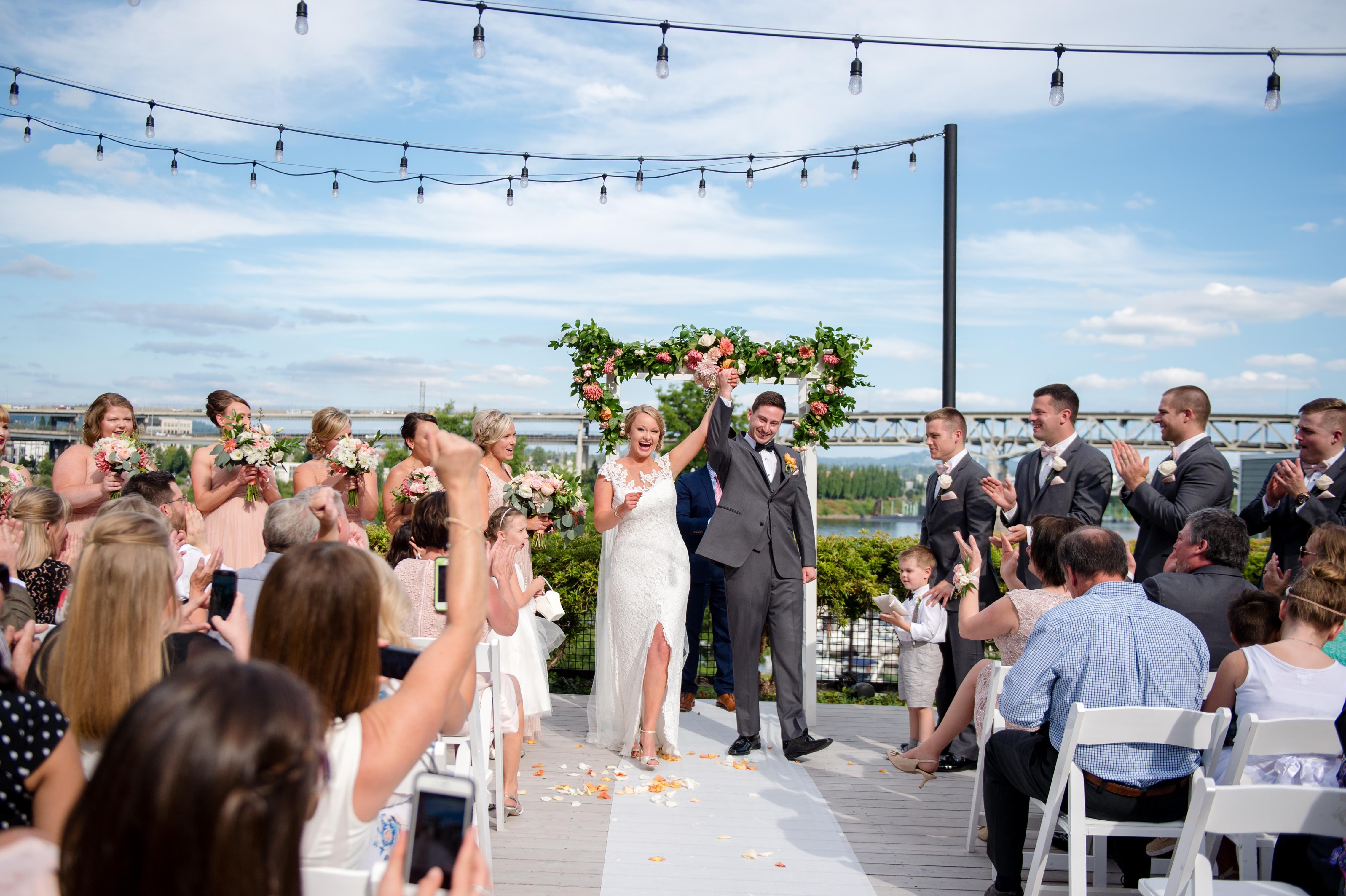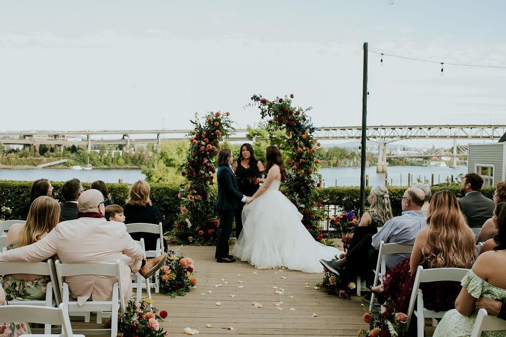 This stunning 1,840-square-foot private riverfront courtyard offers an unforgettable setting for weddings and celebrations. On the second floor of the hotel, the space overlooks the picturesque Willamette River, creating a serene and romantic backdrop for any occasion. Perfect for wedding ceremonies and cocktail hours, it also serves beautifully for welcome dinners and wedding showers. With string lights and sweeping waterfront views, this versatile venue captures the essence of Portland.