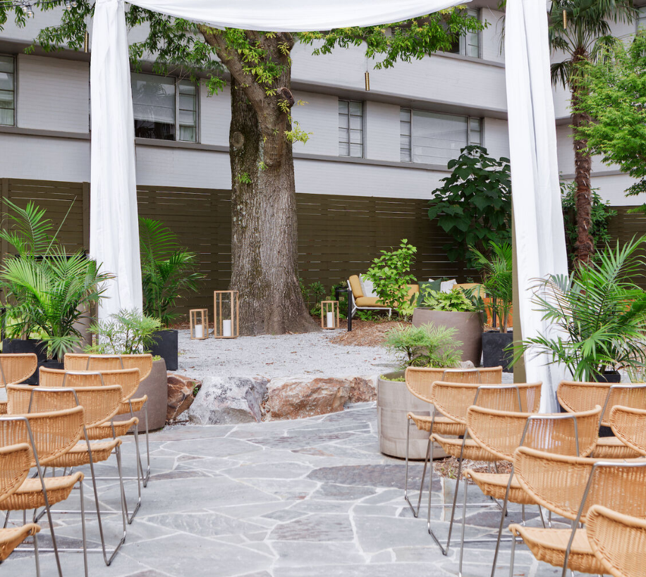 The Kimpton Sylvan Hotel is a stylish boutique retreat nestled in Atlanta’s vibrant Buckhead neighborhood. Housed in a reimagined 1950s residential building, the hotel blends mid-century charm with modern sophistication. Couples and guests will love our lush garden bar, lively rooftop lounge with skyline views, and elegant event spaces perfect for celebrations of all sizes. With locally inspired dining, personalized service, and a walkable location near Buckhead’s best shops and nightlife, The Sylvan offers a one-of-a-kind backdrop for a wedding weekend to remember.