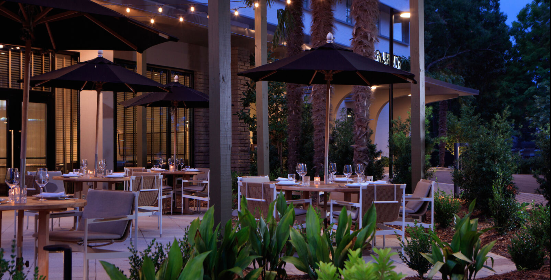 Our Willow Bar and Garden offers a charming patio that seats up to 56 guests at round tables, complete with a built-in bar. Adjacent to the patio, a lush garden features multiple cozy seating areas, making it a favorite spot for intimate gatherings. Many couples also choose this serene garden for their ceremony, which can accommodate up to 40 guests in a ceremony-style setup.
