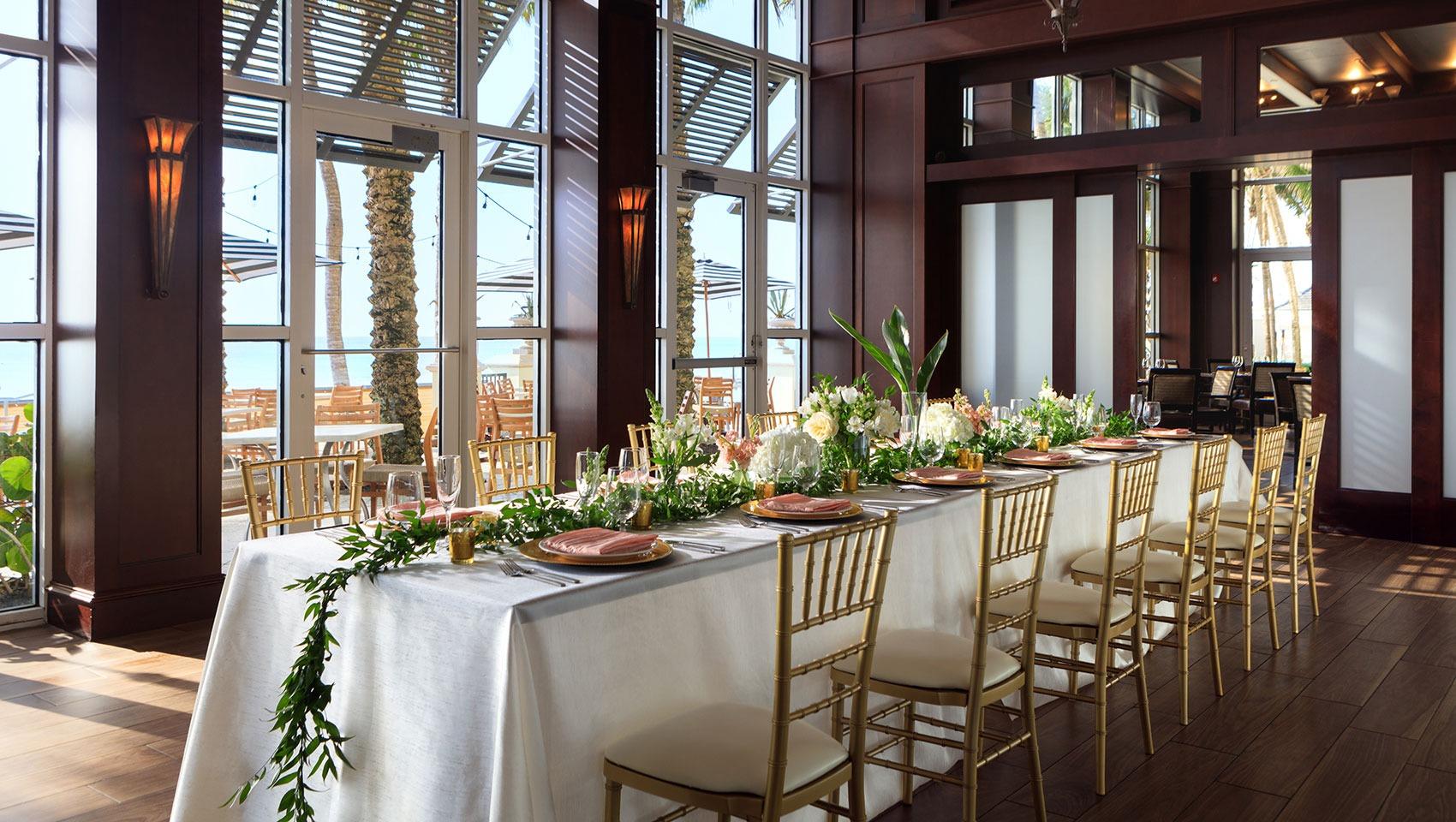 Spanning over 7,500 sq ft of stunning indoor and outdoor event space, the venue offers a thoughtful variety of settings. The Shoreline Room, with its floor-to-ceiling windows and direct access to a private patio, accommodates up to ~100 guests for elegant receptions. Its twin, the Shoreline Patio, invites an al fresco celebration under swaying palms, perfect for cocktail hours or sunset dances. For more intimate gatherings, the Seascape Private Dining Room provides an ocean-facing oasis for 20–40 guests.