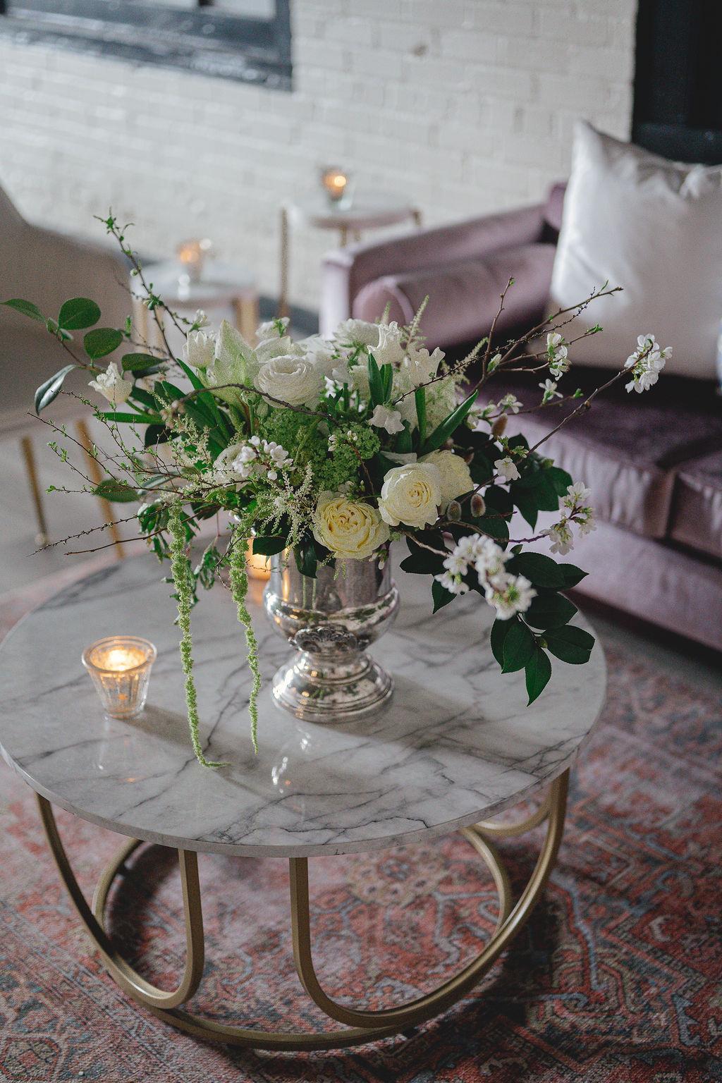 - 9' Farmhouse table - Upholstered chairs - Curated lounge set - Floor length mirror - Mini fridge and wet bar - Record Player