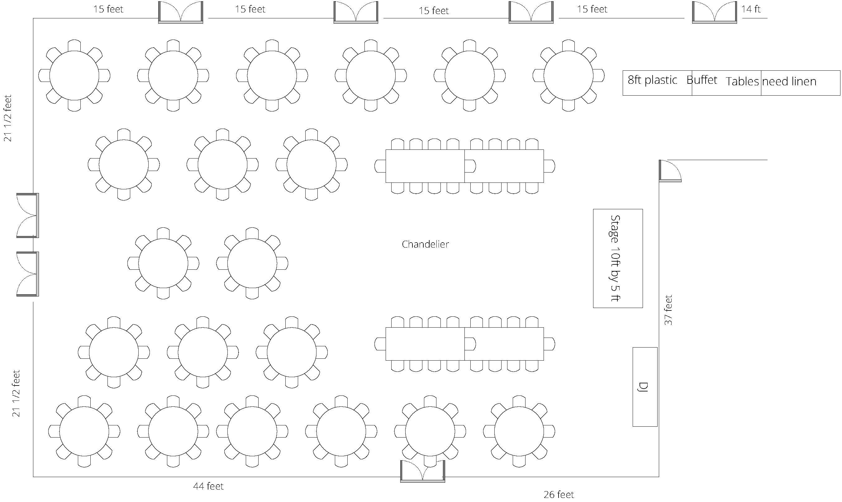 Dimmable Lights Pipe and Drape if needed Catering Kitchen Outdoor Reception area Plenty of Parking Groomsmens Lodge