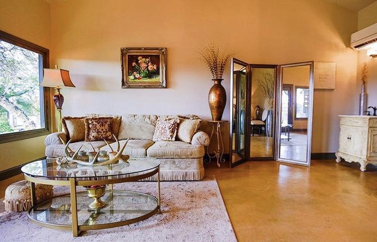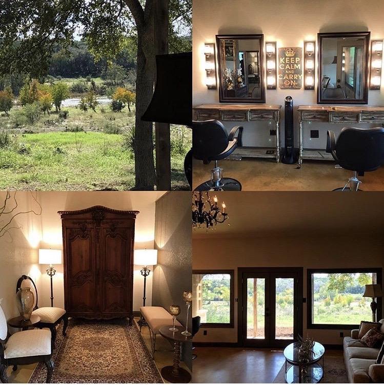 - Two (2) hair/make-up stations with salon chairs - Sink - Furnished waiting area - Covered porch