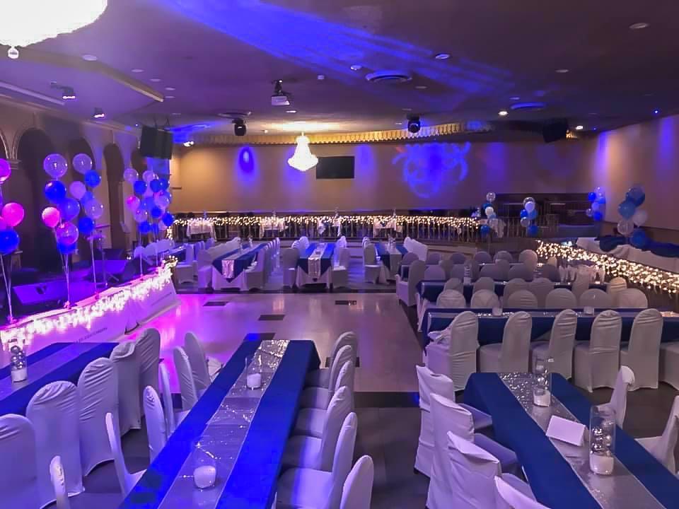Step inside our elegantly designed banquet hall, where every detail has been carefully curated to create a captivating atmosphere. From soaring ceilings adorned with sparkling chandeliers to refined decor and customizable lighting, our venue sets the stage for an elegant and unforgettable celebration.