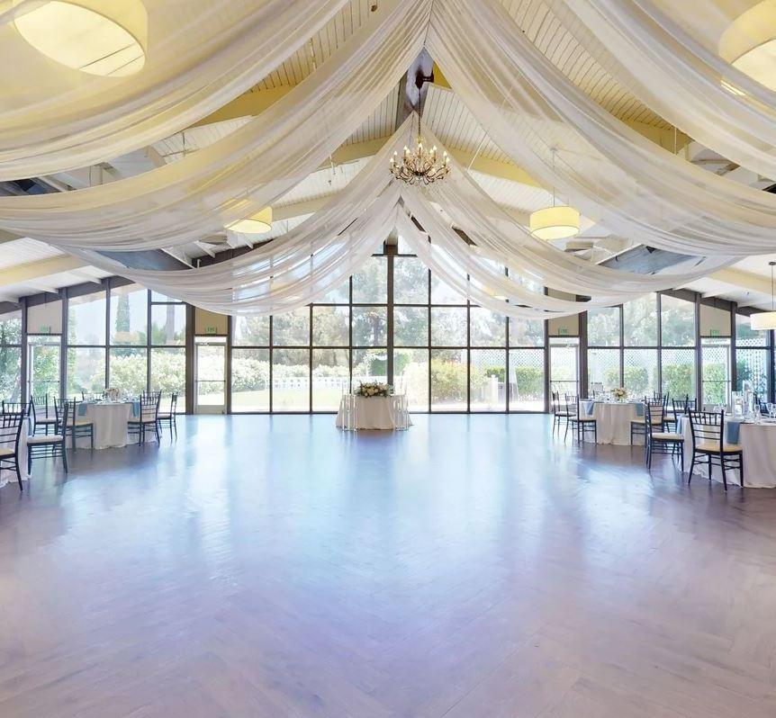 Exchange vows beneath the open sky in a stunning outdoor ceremony framed by nature's beauty. Say "I do" under a custom-adorned wooden arch before celebrating with loved ones in one of our three elegant banquet rooms. The Granada Room offers breathtaking views, accommodating up to 300 guests in a versatile space defined by crystal chandeliers and floor-to-ceiling windows. For smaller gatherings, the Gallery and Fairway rooms provide intimate settings with natural light and dance floors. Pamper yourselves in private get-ready rooms before the big day.