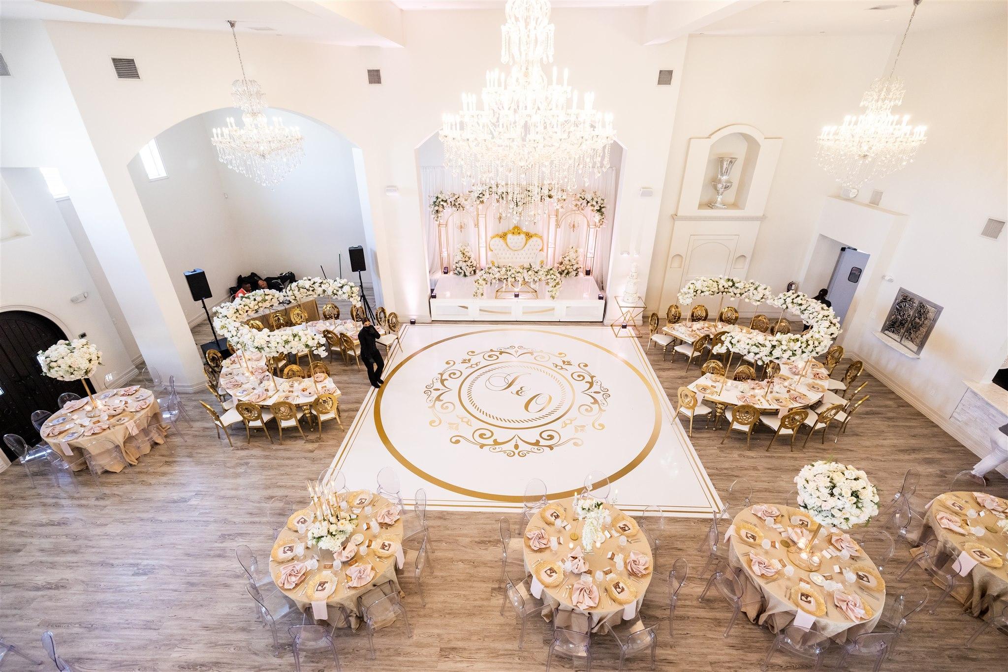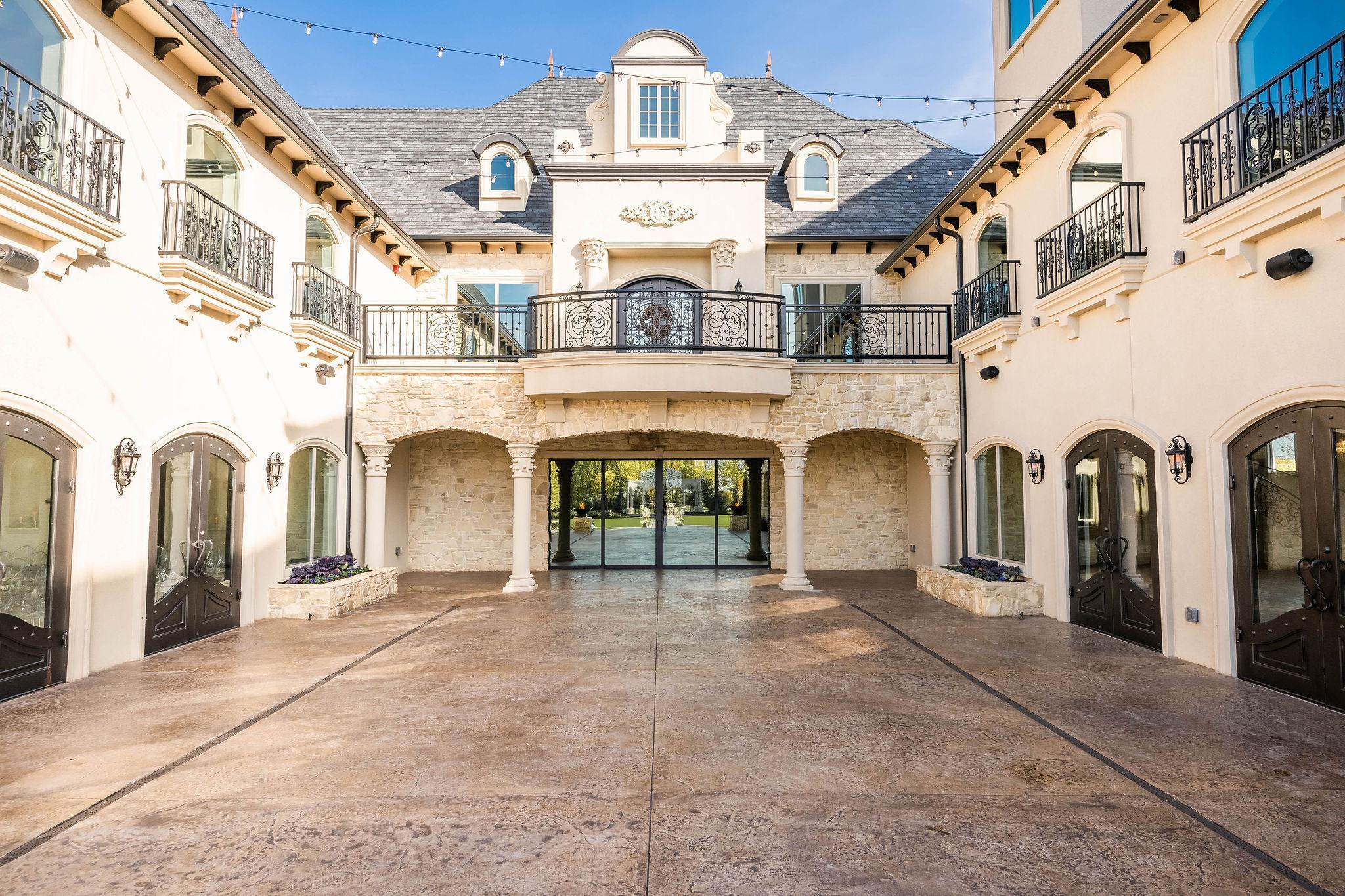 This 5500 square foot space also has large glass pocket doors onto a 1000 square foot covered patio for ease of buffet. This space has a beautiful built in bar and large circular staircase entry and also has a balcony for additional seatng