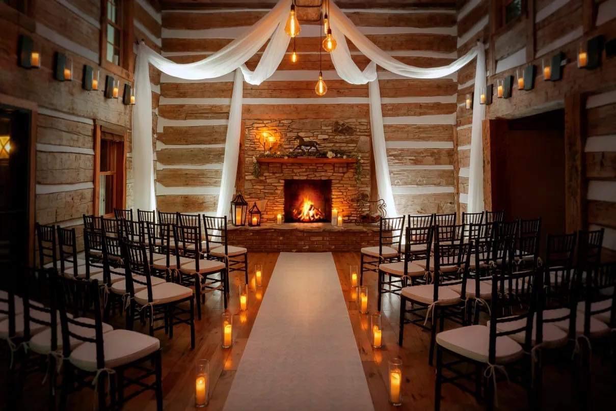Koa’s Lodge is a wedding and event venue that specializes in small to medium sized weddings. Our beautiful and authentic 1830’s log cabin boasts a tall vaulted ceiling, gorgeous fireplace, custom chandelier, hardwood floors, beautiful bridal suite, and so much more! Koa’s Lodge is within easy walking distance of downtown Corydon’s sites and businesses.