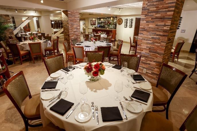 The La Scala is our private room & features a large antiqued wood accent wall with travertine stone floors, and a black granite mahogany bar, making this room perfect for groups of 15 to 90 guests.