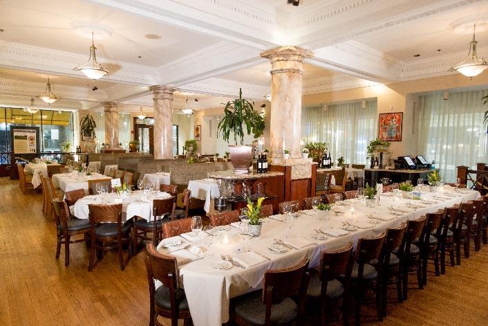 The Aldo Luongo Room is on our main dining level, surrounded by a beautiful mural by artist Aldo Luongo and large floor to ceiling windows with a view of Pine Avenue. This room is lively & bright, and seats a maximum of 54 guests.