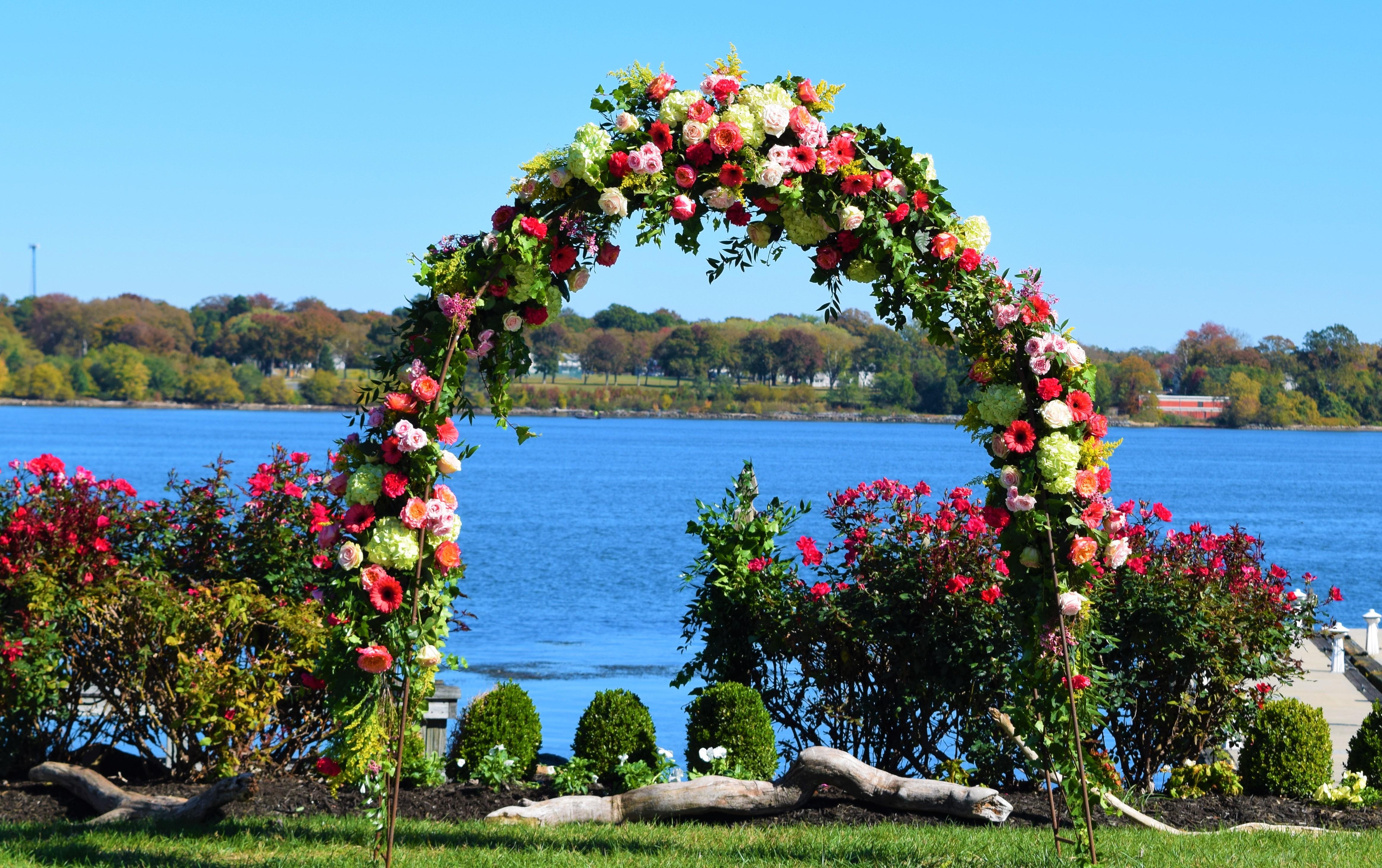 Coastal elegance awaits couples at The Seaplane Base. Situated on the river's edge, This expansive property features two spacious patios, charming pergolas, lush gardens, an elevated deck with panoramic river views, a 150-foot dock, and an opulent white tent. Designed to harmonize with its surroundings, The Seaplane Base is a hidden gem that lets you immerse yourself in the waterfront ambiance.