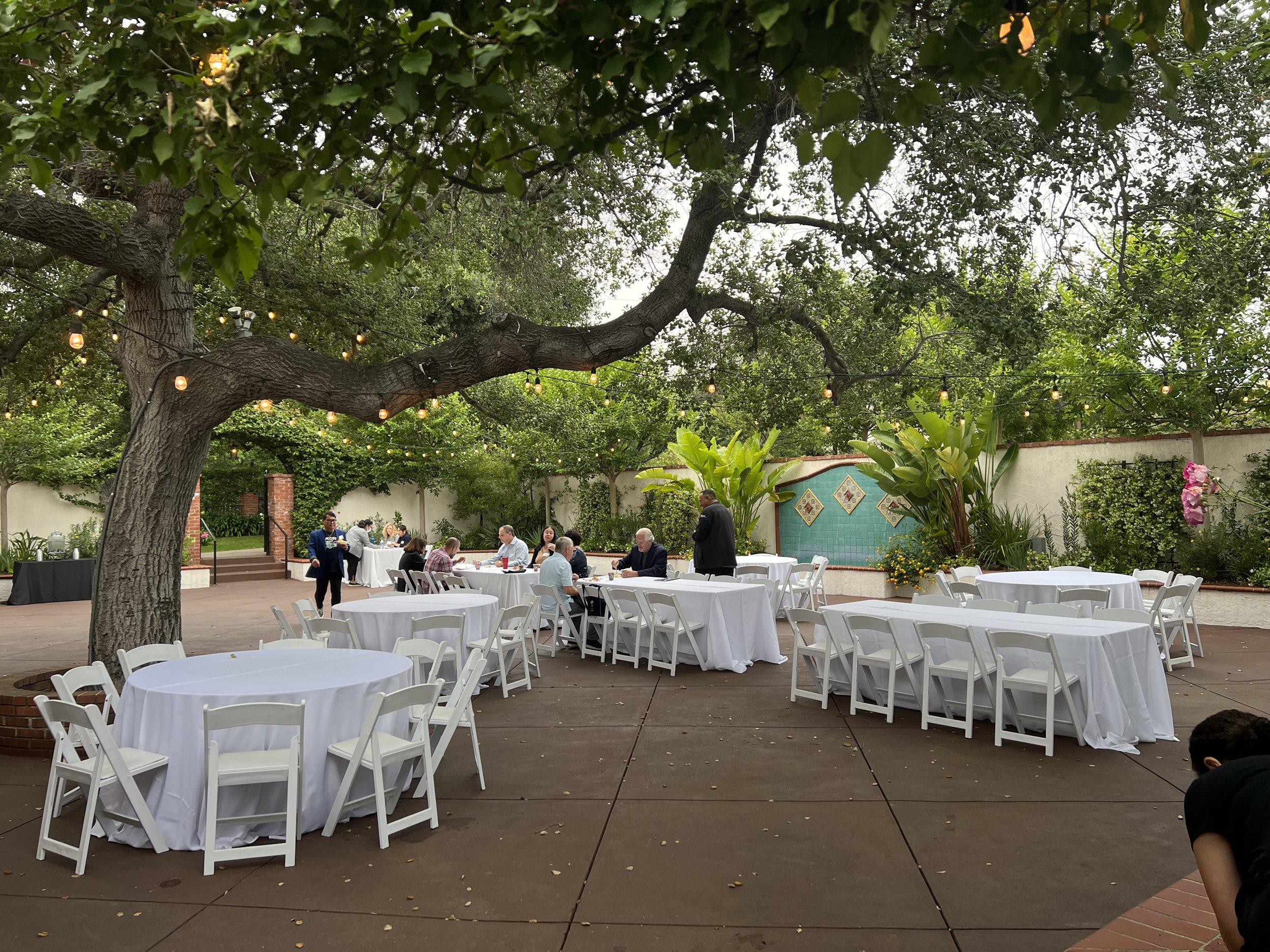 We provide the venue with a beautiful courtyard, tables, chairs, moveable bar, podium, pulldown screen , cocktail and sweetheart tables.