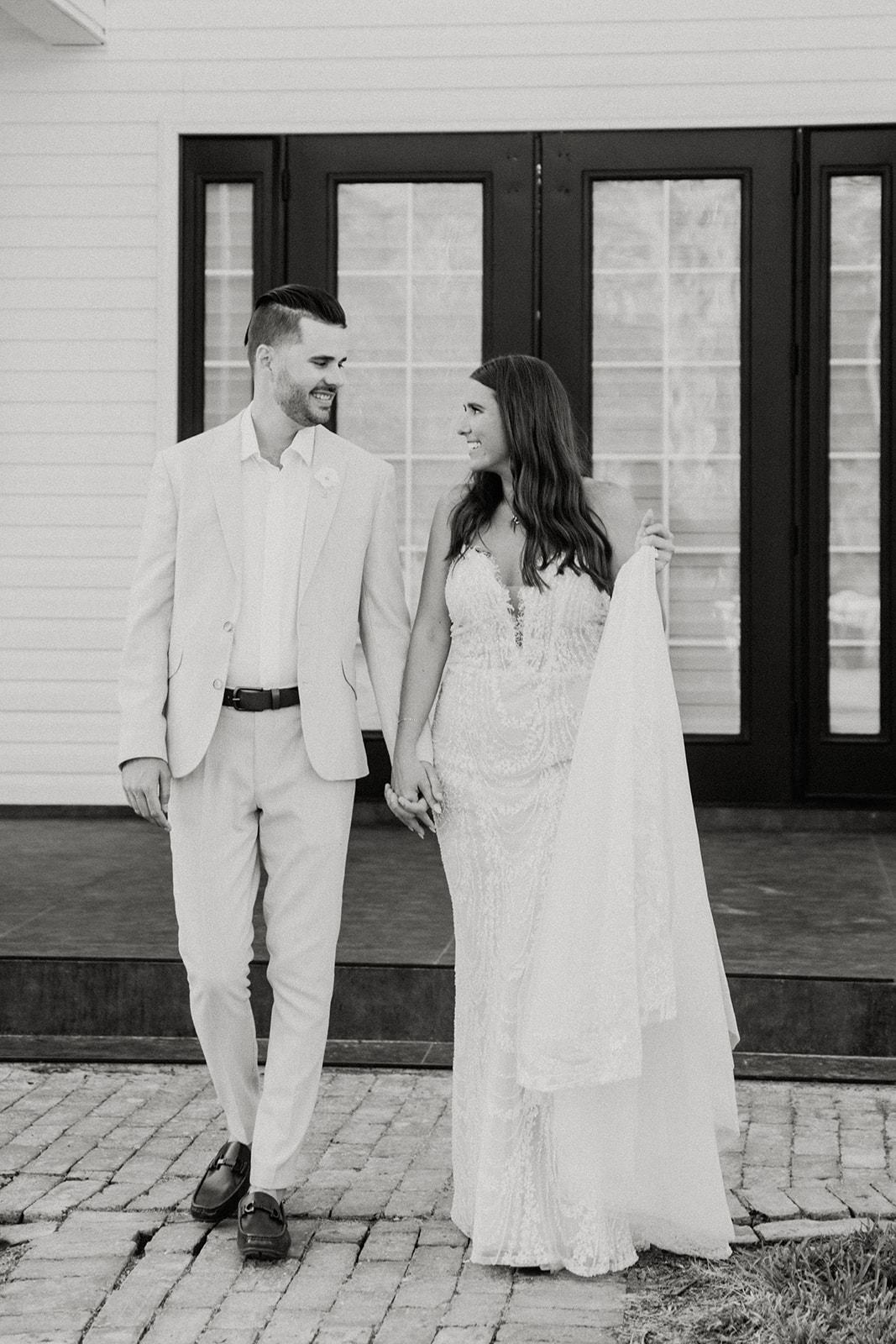 The main house was designed to be clean, neutral, and modern, making it a blank canvas for any wedding style. It weaves together luxury and rustic charm like no other. Here, you can comfortably fit 120 guests with enough space for a dance floor, making it suitable for indoor celebrations.