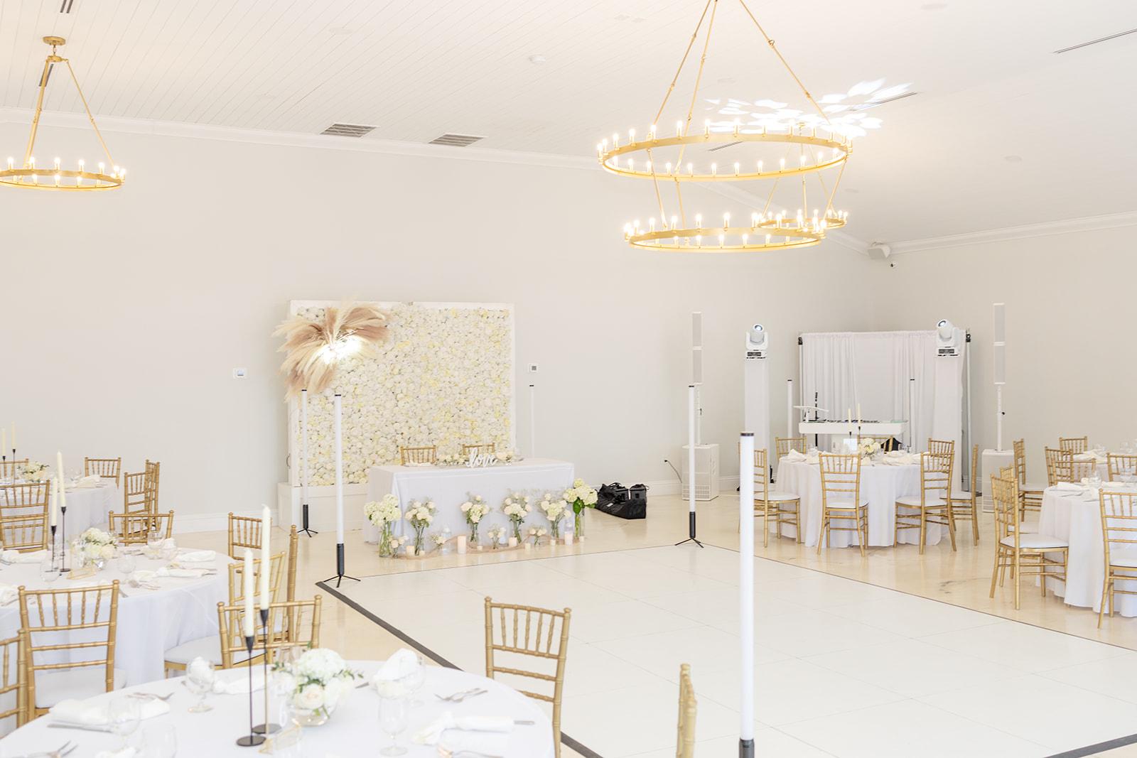 Our reception hall allows any wedding vision to come to life! With white floors & white walls , your color is sure to pop in your design
