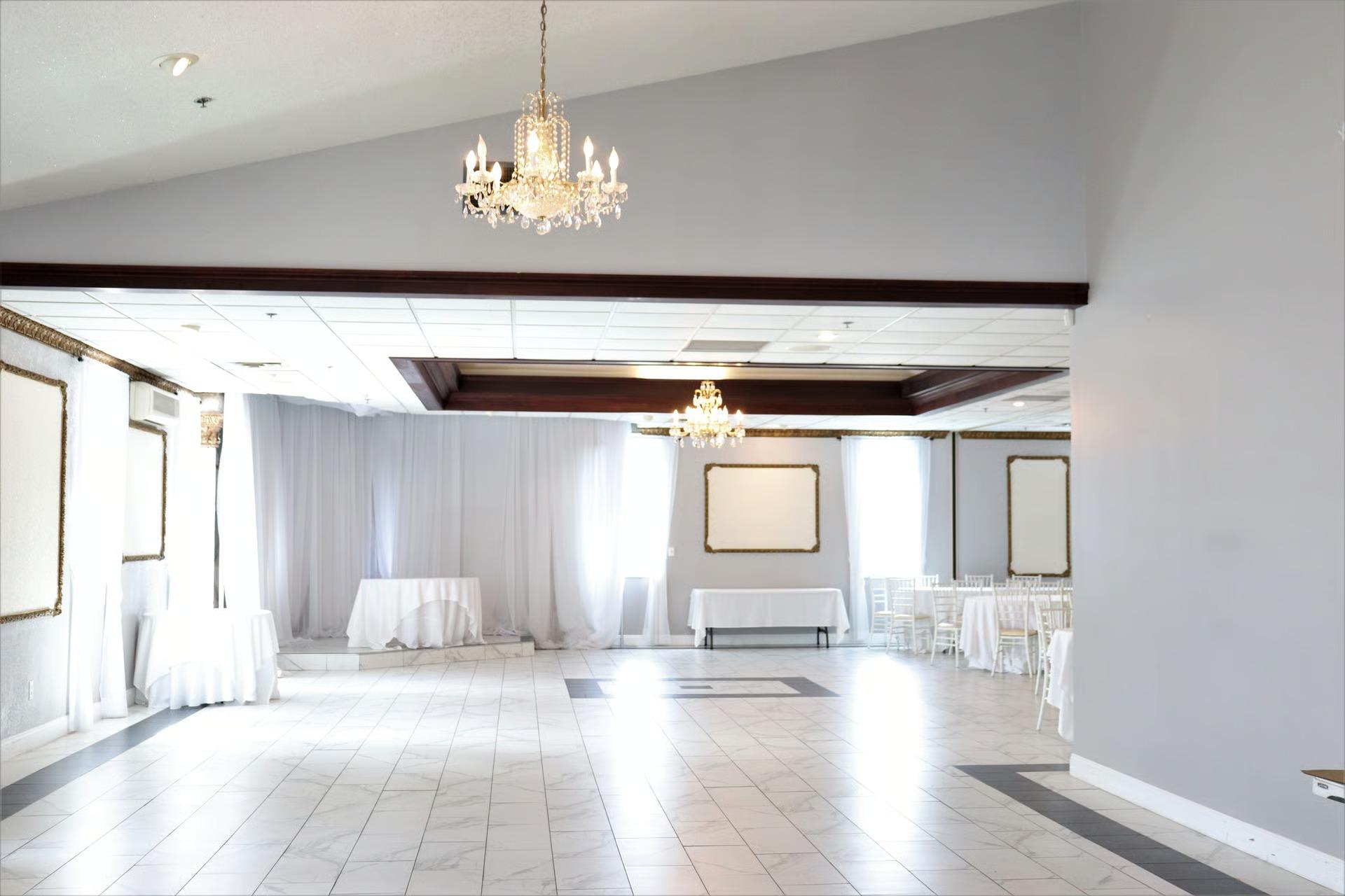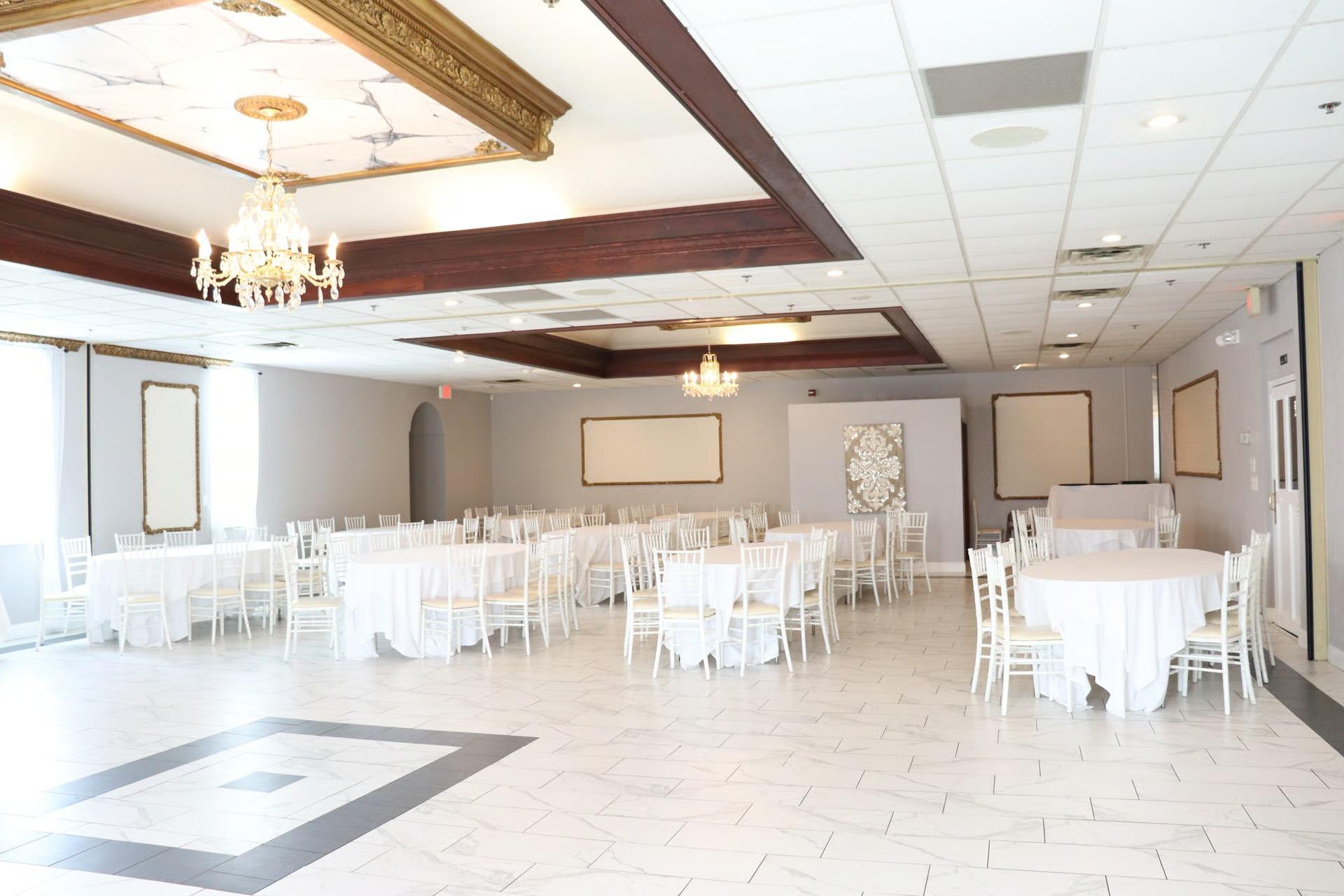 This space has elegant chandelier lighting and gorgeous marble floors that go perfectly with any color scheme or event theme.