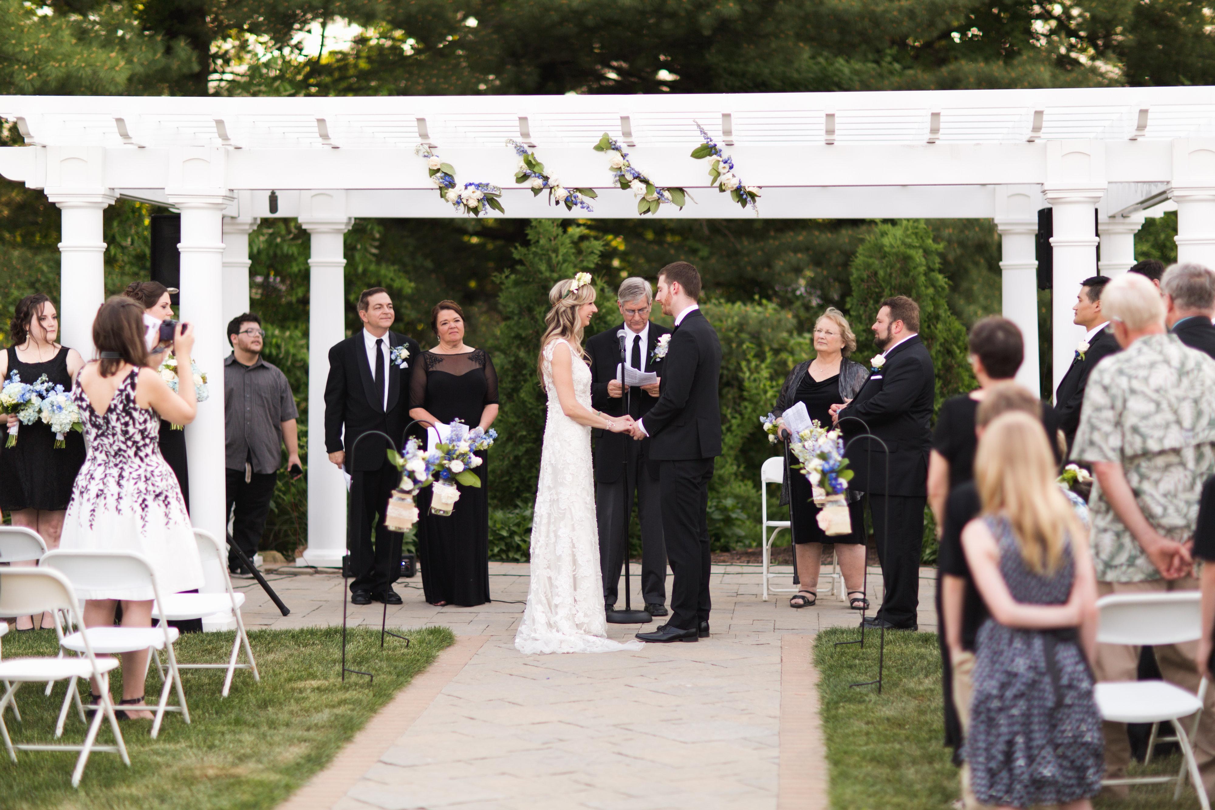 Our Grand Tent is the perfect setting for outdoor Weddings Receptions. Available from May throughout October, the Grand Tent overlooks our patio and ceremony grounds. Our ceremony site is a pergola nestled against a lush tree line. The grounds are accented with a waterfall fountain and gorgeous landscaping.
