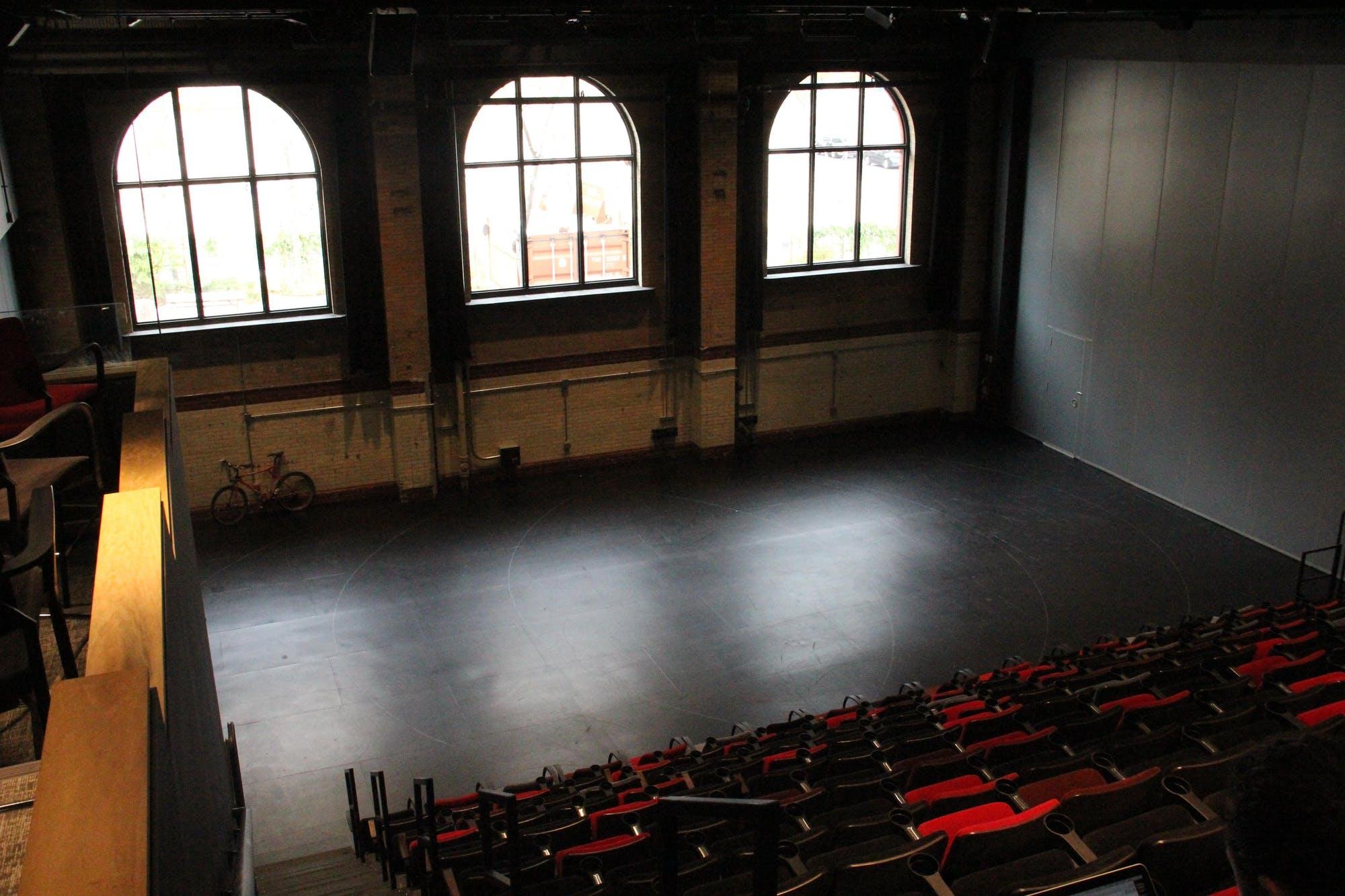 Our theater is a flexible space which can be converted to fit your needs. Our risers can be extended or pushed back to create various configurations and when fully extended our risers seat 232 people. The Theater and restaurant can be rented separately or together. There is a movable wall between the theater and the restaurant space which opens and creates a lovely, flowing space. Both spaces provide a beautiful, unique location for your event, fit with historic architecture and stunning views.