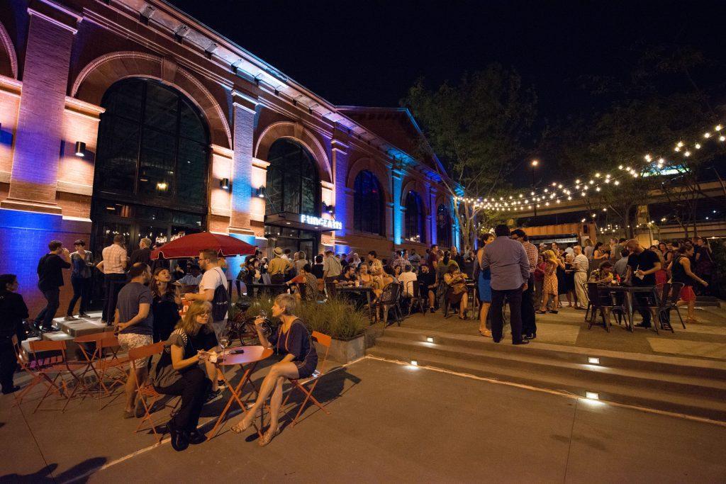 FringeArts is a unique venue in Old City with two versatile spaces that can be rented separately or together, based on the couple’s vision. Most often the spaces are rented together. Our restaurant can seat 80 or host a standing cocktail reception for 150. FringeArts can accommodate up to 200 guests for a seated dinner in their space. The two spaces are separated by a moveable air wall. We can host a ceremony and cocktail hour in the restaurant and in Haas Biergarten right outside, and then open the wall to reveal a dining room space in the FringeArts theater. After dinner, head back out to the main bar and hit up the dance floor, or head outside to Haas Biergarten. Outside we have a bar that is operational May-October, lawn games, fire pits, and a great view of the Ben Franklin Bridge!