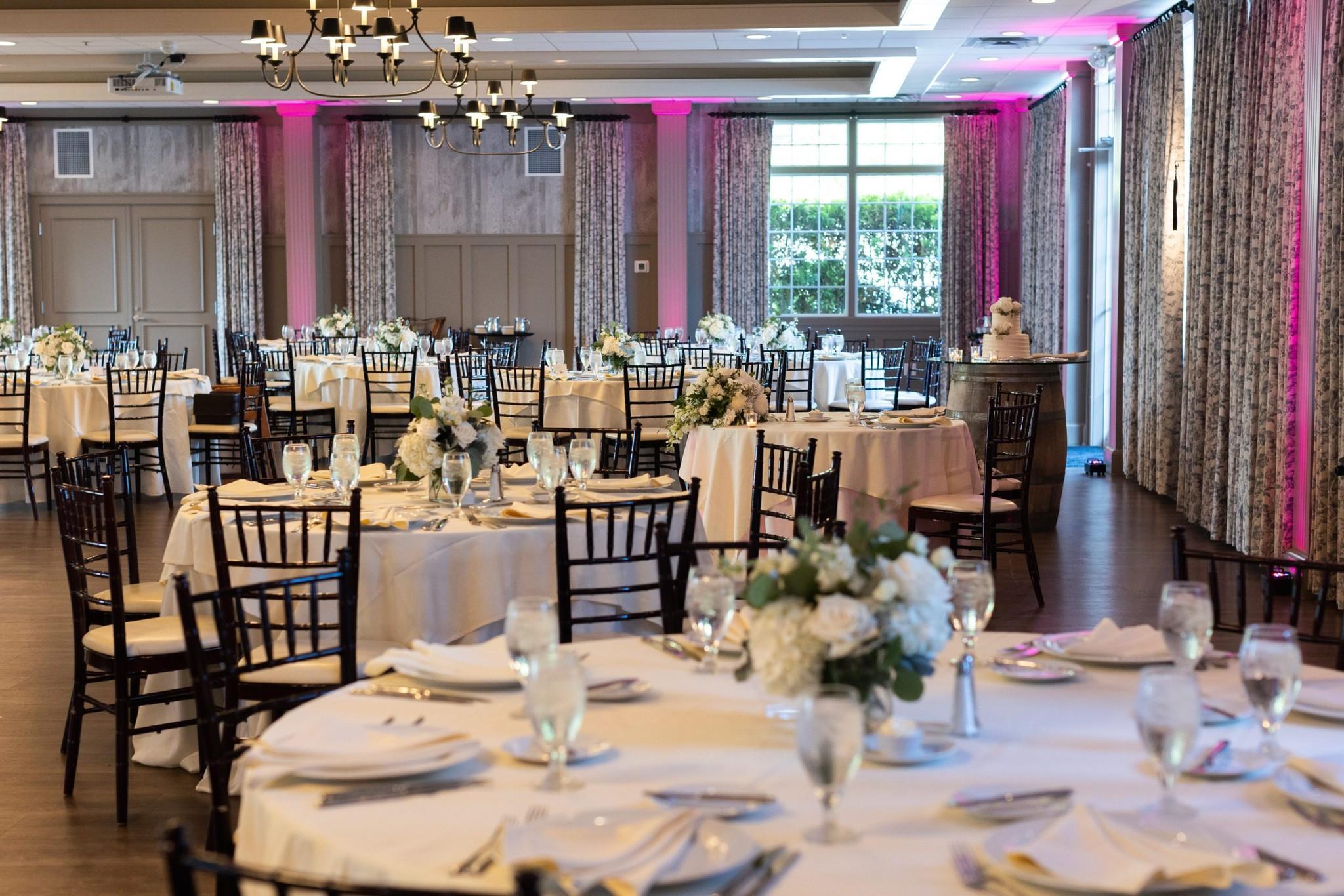 Our Vineyard Ballroom features timeless color palettes, lighting features, and elegant wall treatments.