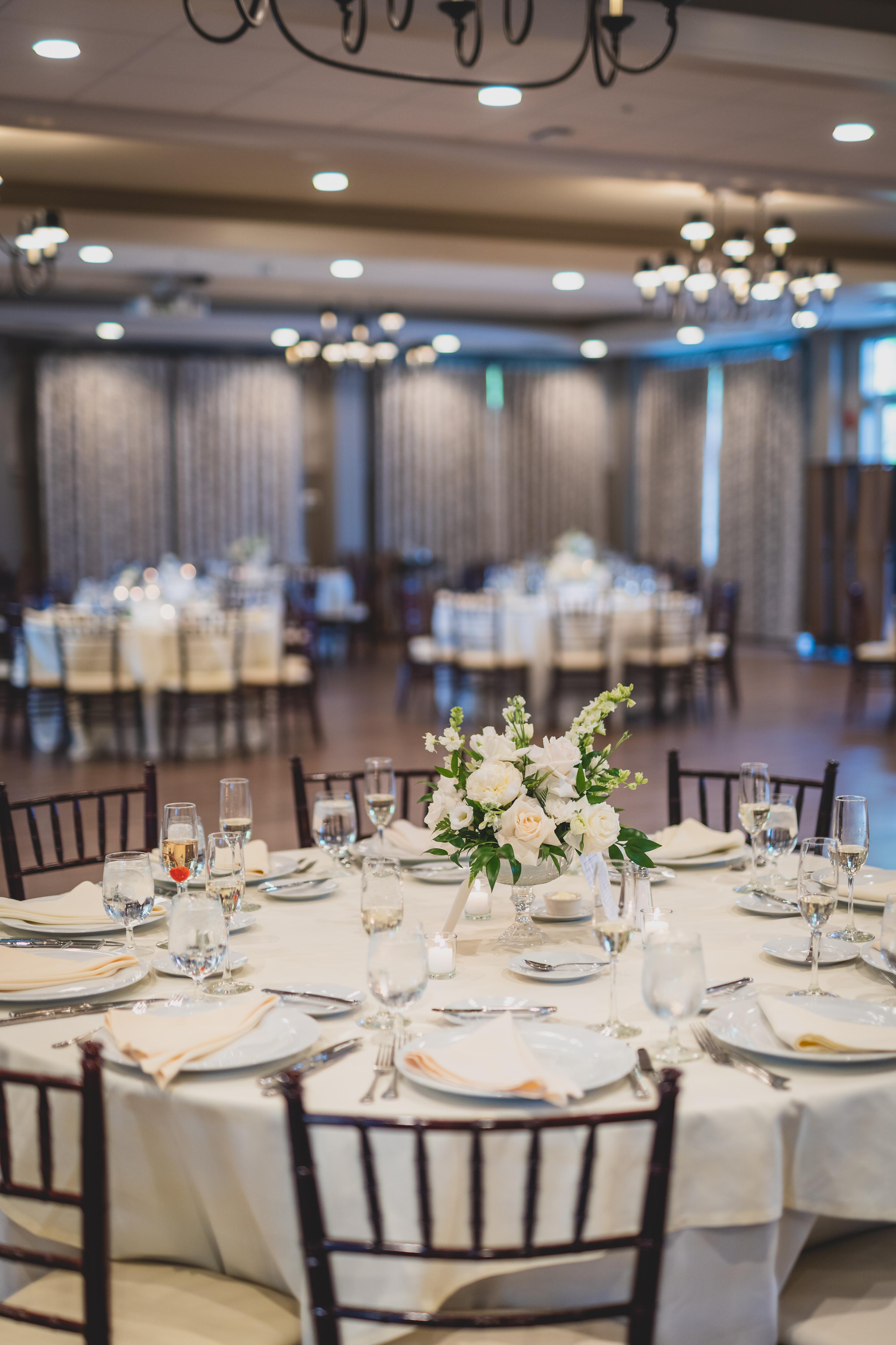 With a grand entrance featuring vaulted ceilings, your guests will feel welcomed immediately. Hardwood floors throughout allow for flexibility with room layout and even bigger dancing space! Included with the ballroom is a large terrace overlooking our fountain pond. In the warmer months, this space is tented and allows your guests to enjoy both the indoor and outdoor settings, rain or shine.
