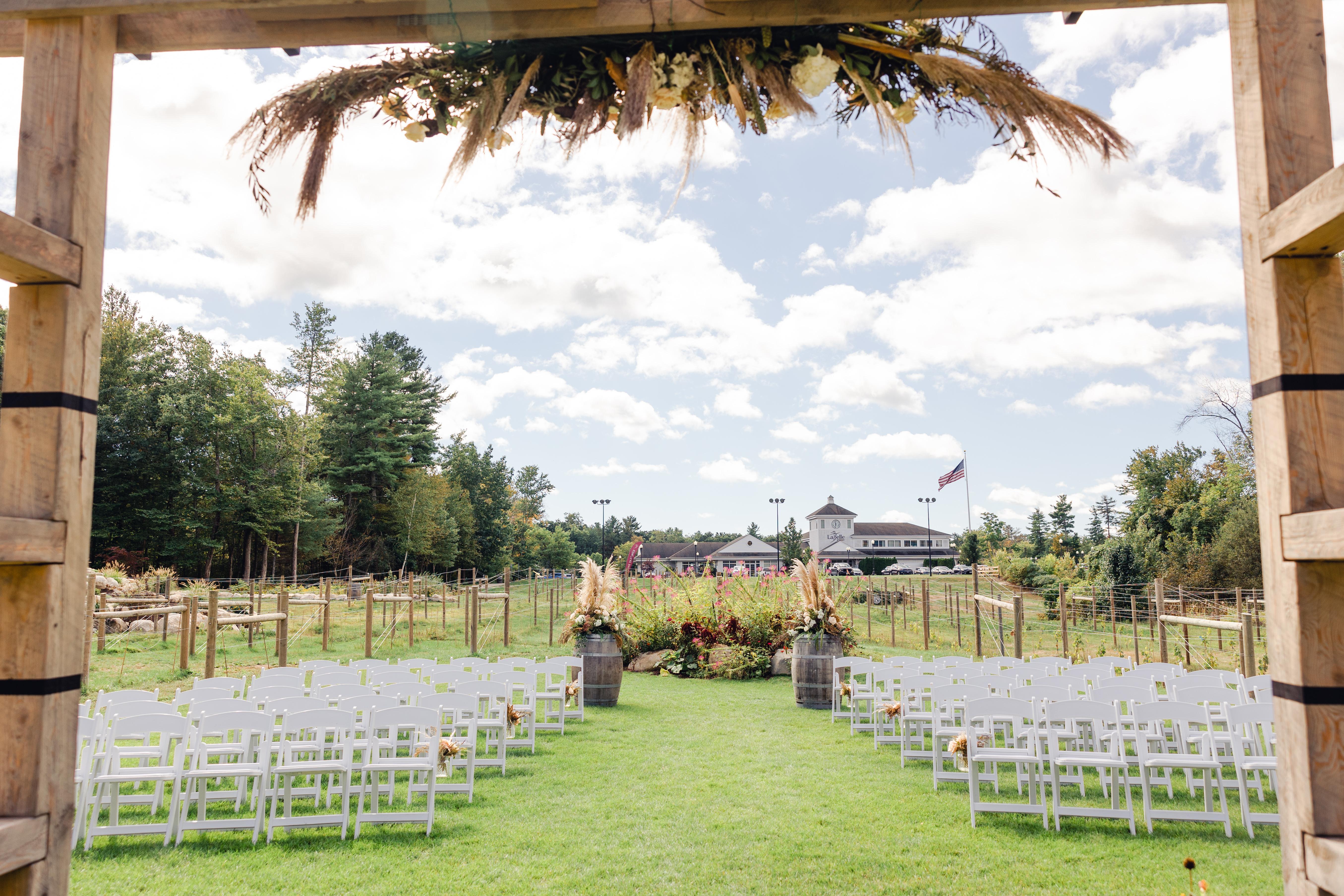 Embarking on the journey of marriage is a momentous occasion, and it deserves a venue that is equally as grand. At LaBelle Winery, we understand that every couple has unique dreams for their special day, and we are dedicated to bringing those dreams to life. Whether you’re planning an intimate elopement, a destination, simple or grand wedding, LaBelle Winery in Derry, NH is the perfect venue for your once-in-a-lifetime celebration! Our picturesque vineyards provide the perfect backdrop for your celebration, with stunning views and a tranquil ambiance that will leave you and your guests breathless. Winemaker Amy LaBelle and an award-winning architect created our refreshingly distinctive venue spaces. Our team of wedding experts will assist you in curating an unforgettable experience for you and your loved ones from start to finish. Our award-winning wine, exceptional cuisine, carefully orchestrated details, and extraordinary service will exceed your expectations!