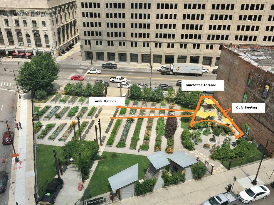 Lafayette Greens is a green space and urban garden in the heart of downtown Detroit, next door to the famous Coney Islands and across the street from the fabulous Westin Book Cadillac Hotel. The award-winning garden, created by Kenneth Weikal Landscape Architecture, was donated to The Greening of Detroit by Compuware in 2014 and is a place of beauty. A certified pollinator garden, focused on growing plants for butterflies, native and honey bees and birds, your ceremony could take place amongst the fluttering of butterflies, chirping of birds and happy hum of bees.