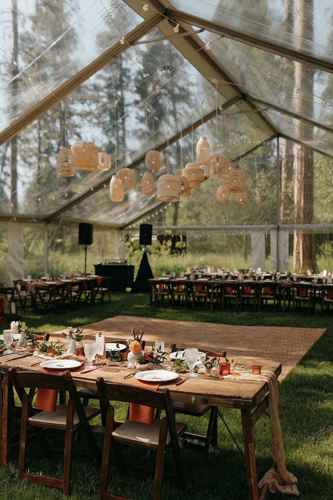 Roblay’s Garden is a stunning 4,000-square-foot oasis tucked behind our lodge. This private, picture-perfect space is surrounded by waist-high shrubbery, towering Ponderosa Pines, and an open sky that turns magical under the stars. Whether you’re hosting an unforgettable Welcome Party, a seamless Rehearsal Dinner, or a lively reception, Roblay’s is the ultimate gathering spot. Our built in bar is ready to cocktails; it’s the perfect place to celebrate, toast, and dance the night away!