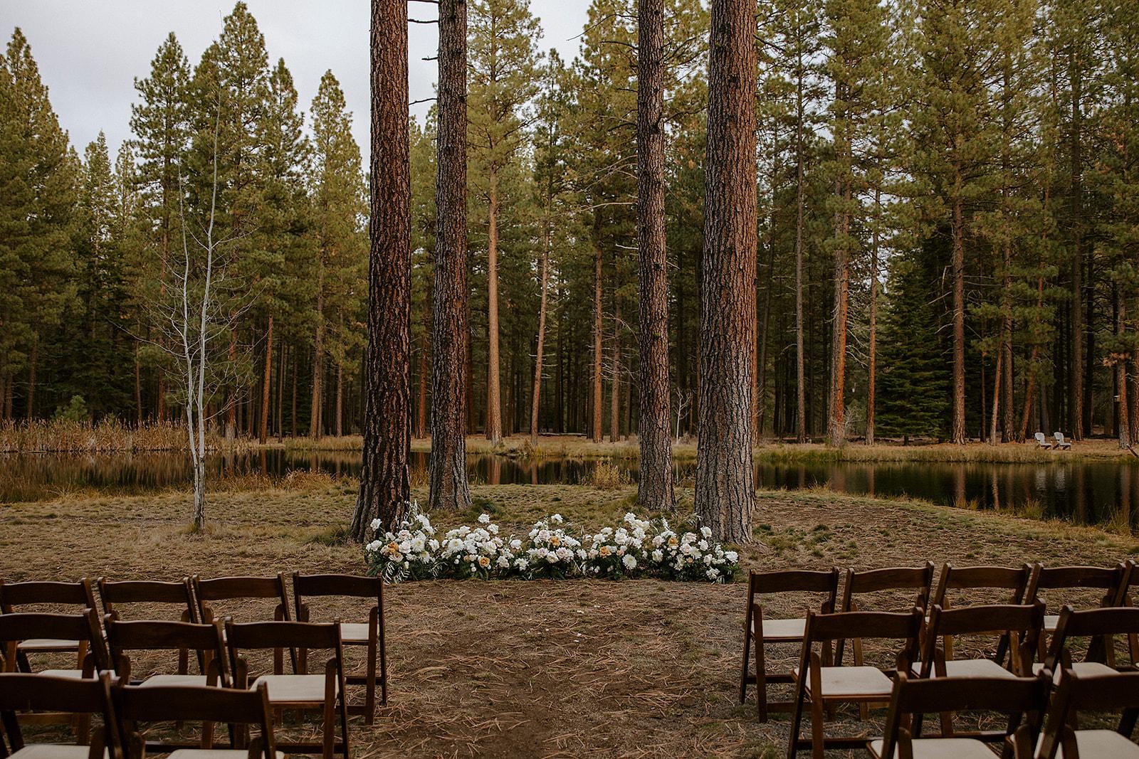 Quaint and picturesque, Osprey Point Pond is our acre-long catch-and-release fly fishing pond, a charming spot where couples exchange their 'I do's.' Surrounded by towering Ponderosa Pines and offering sweeping views of Black Butte, this serene and scenic location sets the perfect backdrop for your ceremony.