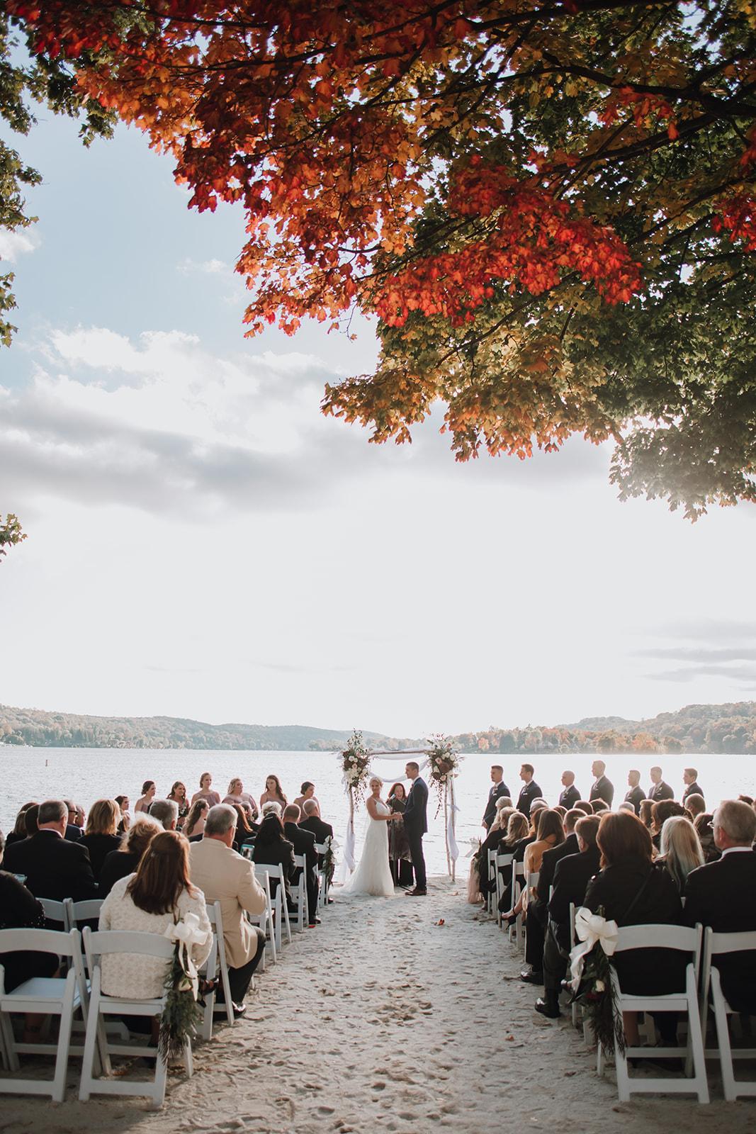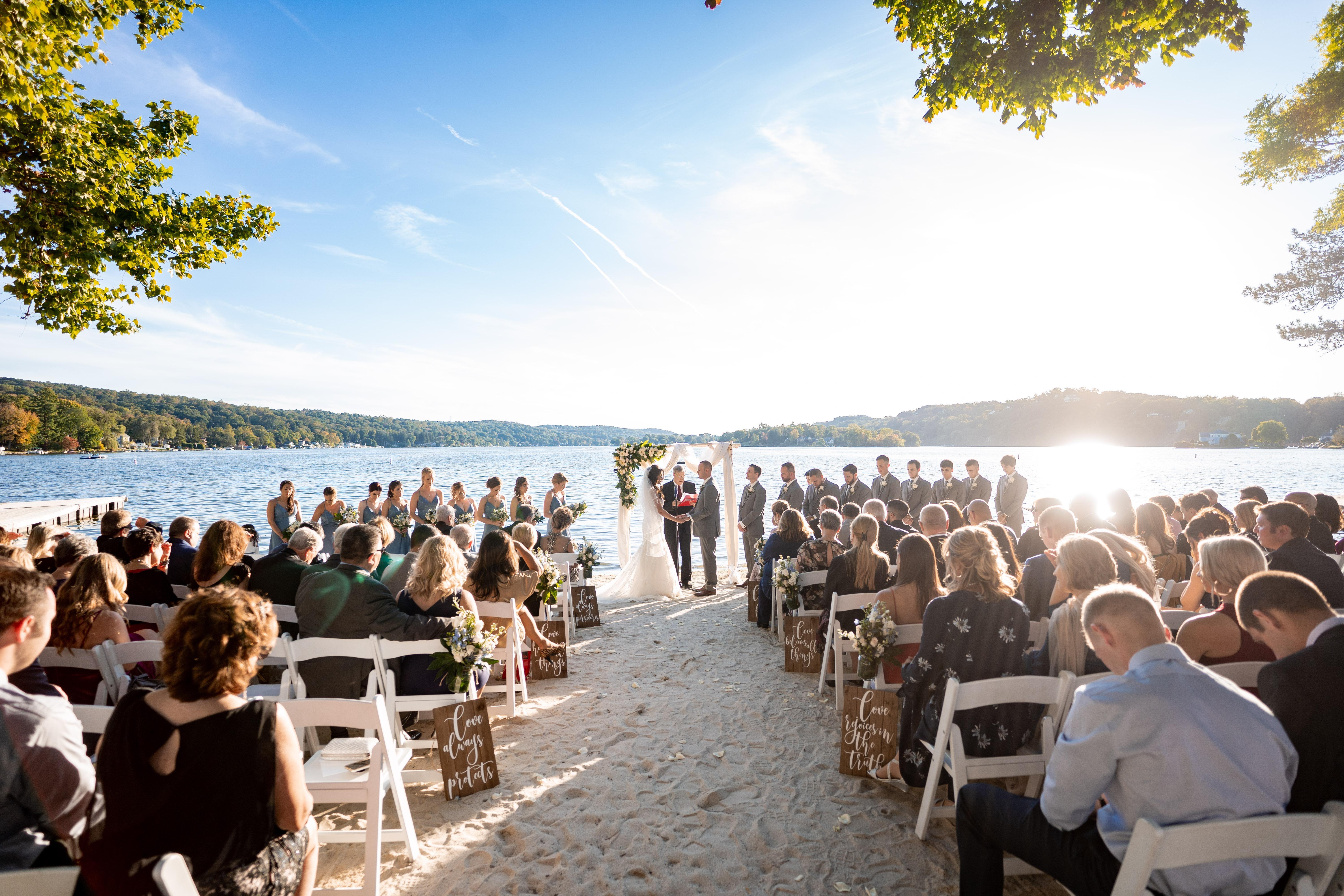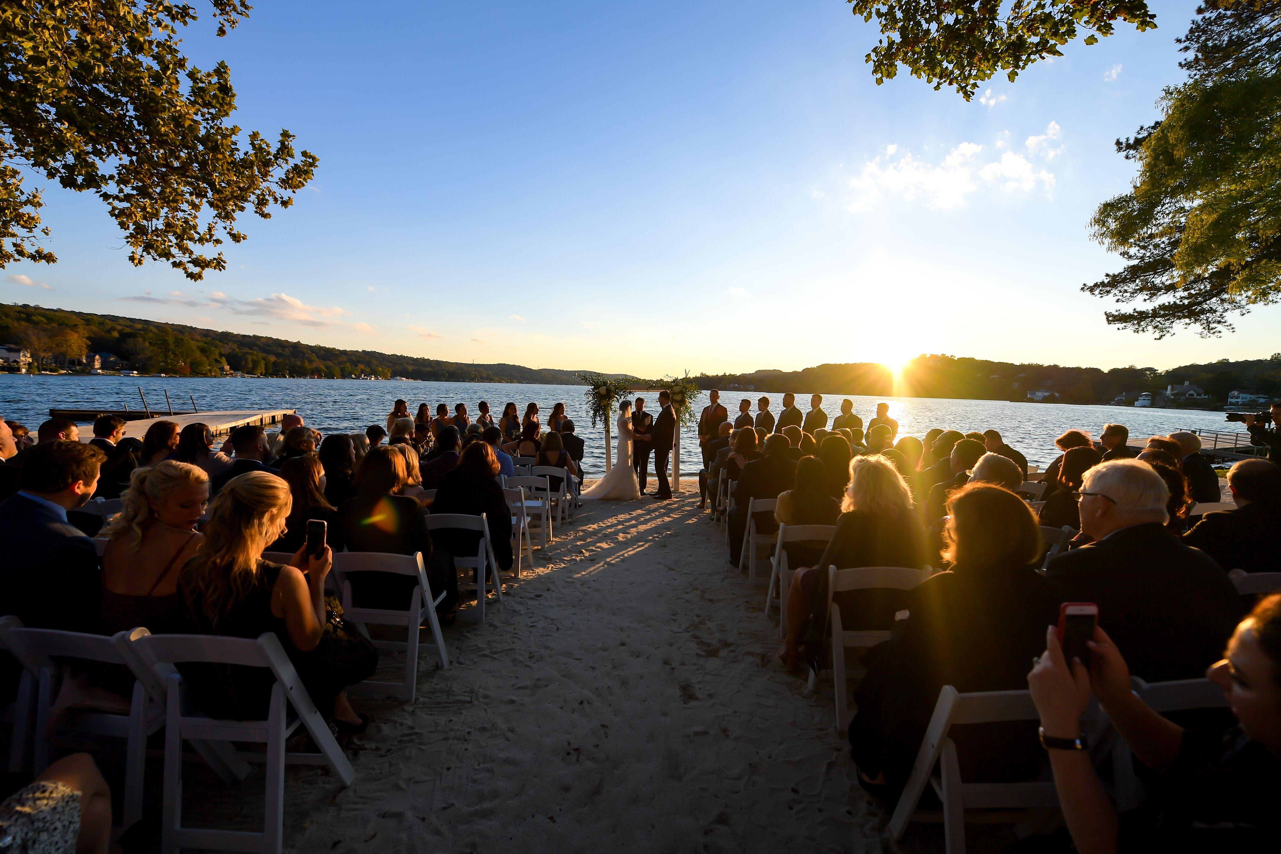 A serene and picturesque water front setting perfect for a wedding ceremony.